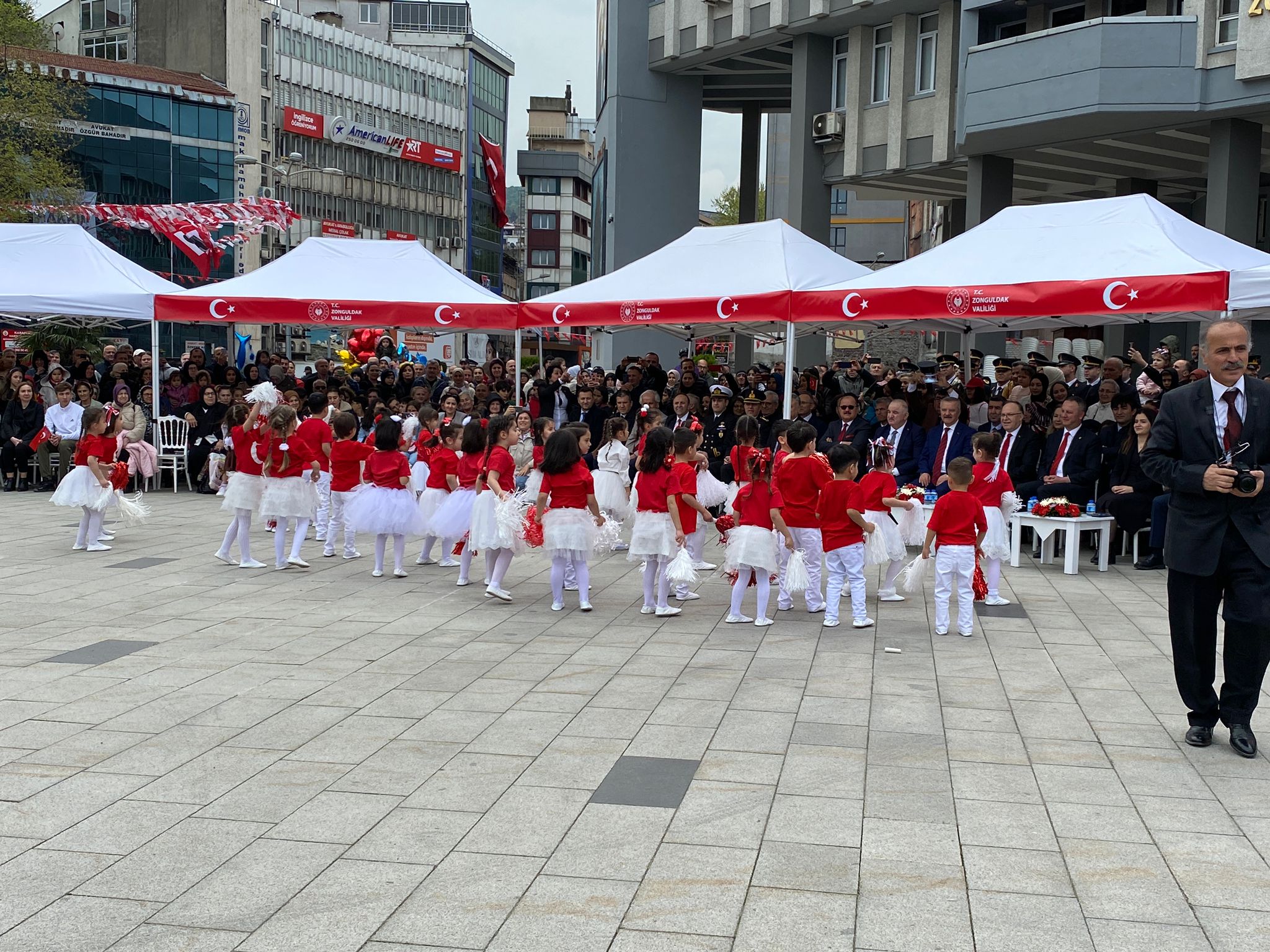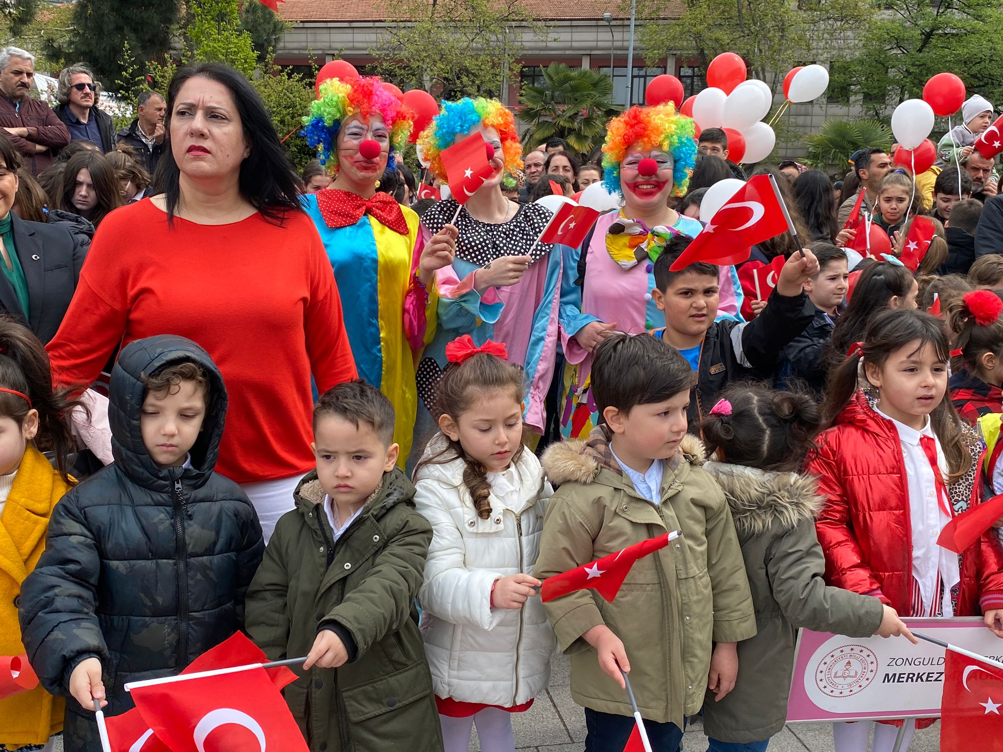 Öğrenciler, 23 Nisan Ulusal Egemenlik ve Çocuk Bayramı kutlamalarında şiirlerini okuyarak Halk Oyunları gösterileri sergiledi.