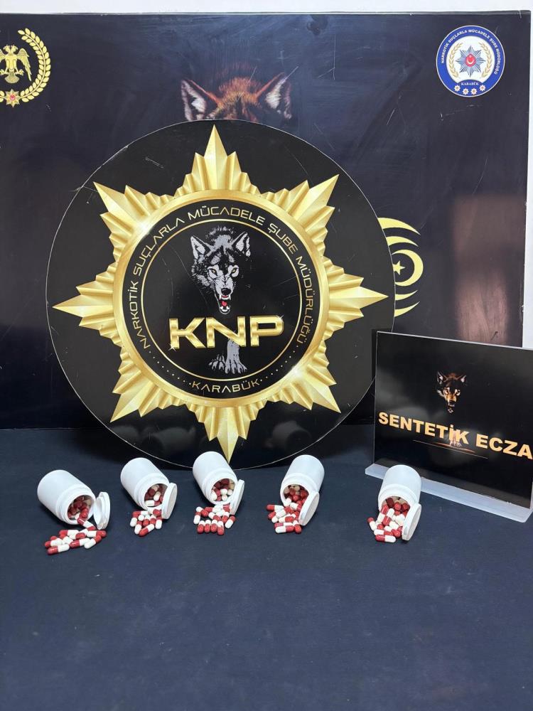 Karabük Cumhuriyet Başsavcılığı Koordinesinde İl Emniyet Müdürlüğü İstihbarat ve Narkotik Suçlarla Mücadele Şube Müdürlüğü görevlileri uyuşturucu veya uyarıcı madde temin ve ticaretinin önlenmesine yönelik merkezde uygulama yaptı. Durumundan şüphelenilen İ.K. isimli şahsı durduran ekipler, yaptıkları üst aramasında 250 adet uyuşturucu hap ele geçirdi.