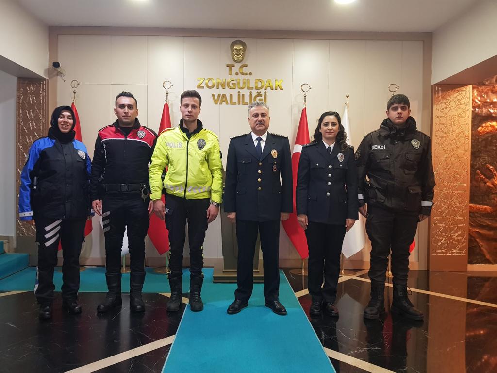 Zonguldak Valiliği önünde gerçekleştirilen çelenk sunma törenine Zonguldak, Valisi Mustafa Tutulmaz, İl Emniyet Müdürü Fahri Aktaş İl Genel İl Jandarma Komutanı Albay Cezmi Yalınkılıç, daire müdürleri ve üst düzey Emniyet personeli ve vatandaşlar katıldı. Törende, Atatürk Anıtı önüne çelenk konulmasının ardından günün anlam önemini belirten konusma yapan İl Emniyet Müdürü Fahri Aktaş , 10 Nisan "Polis Günü” , Aziz milletimizin huzur ve güvenliğinin teminatı olarak gördüğü Türk Polisine armağan ettiği bir şükran günüdür.Teşkilatımız; kurulduğu 1845 yılından bugüne kadar huzurda istikrarın sağlanması için hem kentlerde, hem kırsalda, hem de son dönemde sınır ötesinde kahramanca mücadele ederek devletin gücünü suçlulara gösterirken şevkatli elini mazlumlara uzatmaktadır. Her geçen gün yenilenen teknolojik imkanlarıyla, çağın gereklerine uygun araç gereç ve teçhizatıyla, kaliteli ve donanımlı personel yapısıyla; başta hain terör örgütleri olmak üzere, uyuşturucu, organize suç örgütleri, kaçakçılık ve diğer suç unsurlarına karşı kararlı bir mücadele yürütmektedir. Zonguldak polisi suç ve suçluyla mücadelede mesai mefhumu gözetmeksizin çalışmalarına devam etmektedir. İl Genelinde asayişin sağlanmasına yönelik çalışmalarımız olumlu sonuçlar vermiş, olayların aydınlatılması yönünde %93 'lük bir başarı sağlanmıştır. Uyuşturucu son derece hassas olduğumuz ve odaklandığımız bir konu, Ülkemizin gençlerini, geleceğimizi ve istikbalimizi teminat altına alma ve onları sağlıklı birer birey olarak yetiştirme noktasında polisiye tedbirlerimizi özellikle okullar bölgesinde yoğunlaştırıyoruz. Bu doğrultuda İl Merkezinde Eğitim Öğretim yılı başlangıcında (55 okulda Milli Eğitim Müdürlüğü ile koordineli olarak "Güvenli Okul Koordinasyon Görevlisi” adı altında personel görevlendirilmiştir.