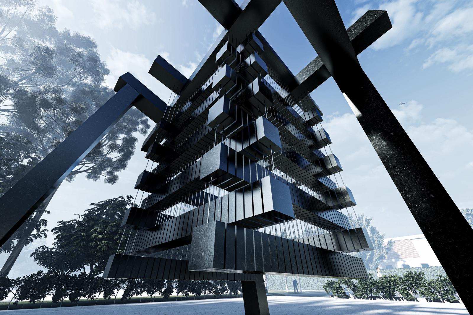 Anıtın soyut formu, madencilerin enkazda ilerlemek için kullandığı ve depremin en kritik anlarında sayısız canı kurtarmalarını sağlayan “domuz damı” tekniğine gönderme yapıyor. AFAD’ın “girilemez” dediği noktalara bu teknikle giren madenciler, deprem bölgesinde adeta zamanla yarışmıştı.