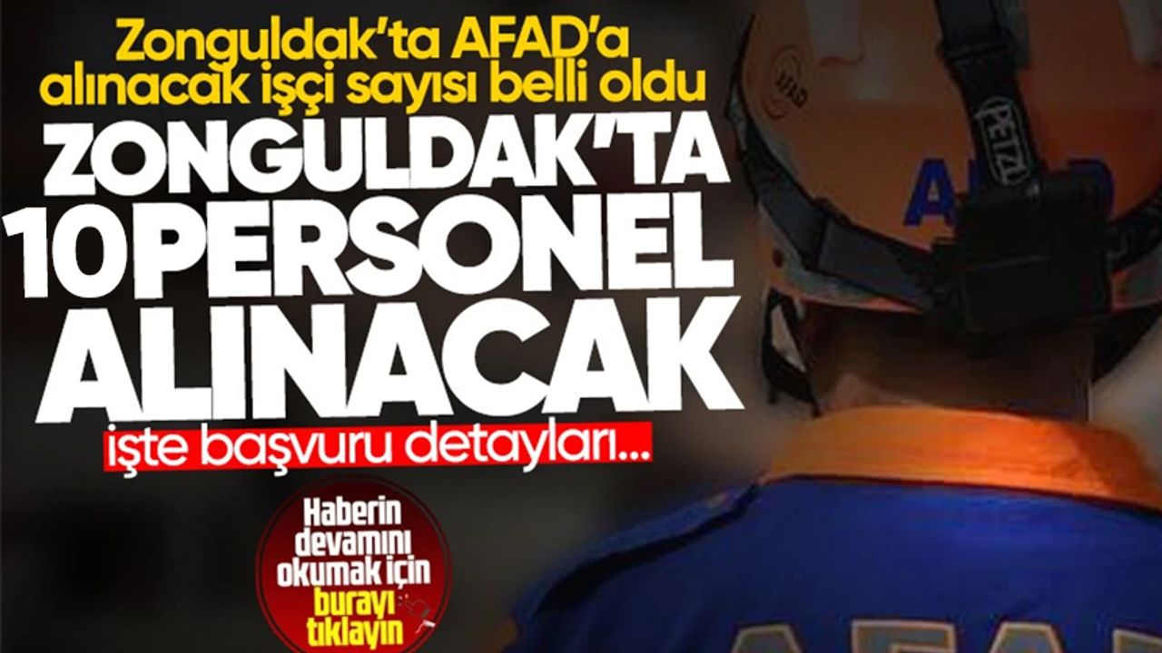 Afet ve Acil Durum Yönetimi Başkanlığı aralarında Zonguldak'ın da olduğu çok sayıda ilde 1250 sözleşmeli personel alacak. Son başvuru tarihinin 5 Kasım olduğu belirtildi.