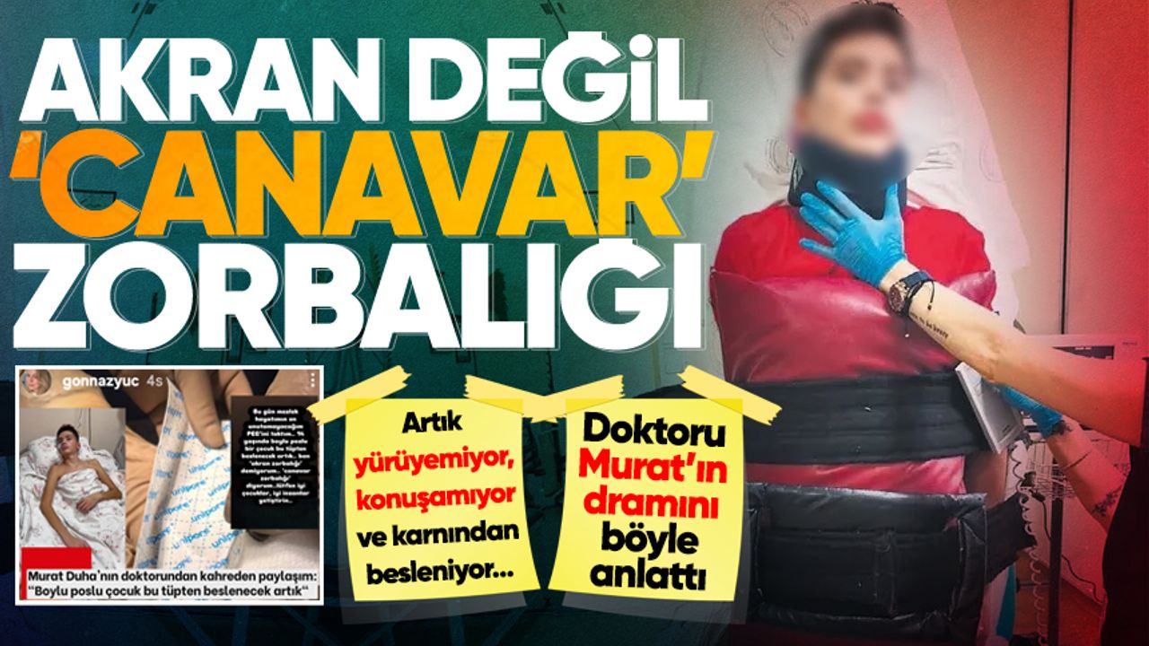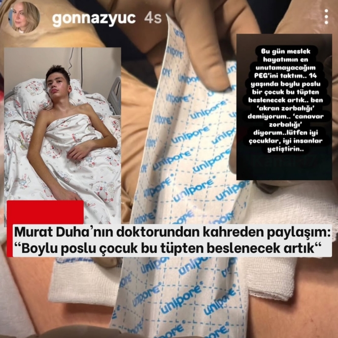 Karnına takılan tüple beslenebilen Murat, uğradığı zorbalık sonucu konuşamaz ve yürüyemez hale geldi. Murat'ın doktoru Prof. Dr. Gonca Handan Şahan Üstündağ, yaptığı paylaşımla akran zorbalığına isyan etti. Prof. Dr. Üstündağ, Murat Duha'ya takılan beslenme tüpü (PEG) sonrası yaşadığı derin üzüntüyü şu sözlerle ifade etti: "Bugün meslek hayatımın en unutamayacağım PEG'ini taktım. 14 yaşında boylu boslu bir çocuk bu tüpten beslenecek artık. Ben akran zorbalığı demiyorum.