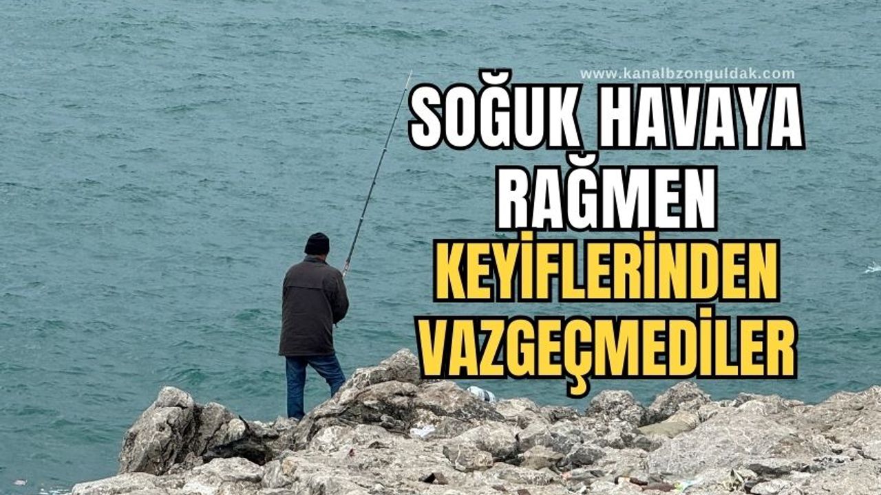 Zonguldak’ta amatör balıkçılar soğuk havaya rağmen balık tutmaktan vazgeçmedi.