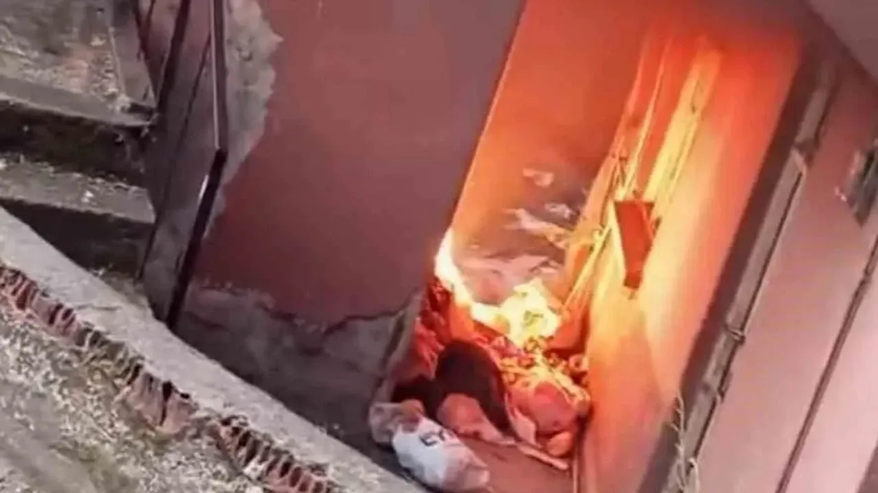 Apartman girişinde yangın çıktı