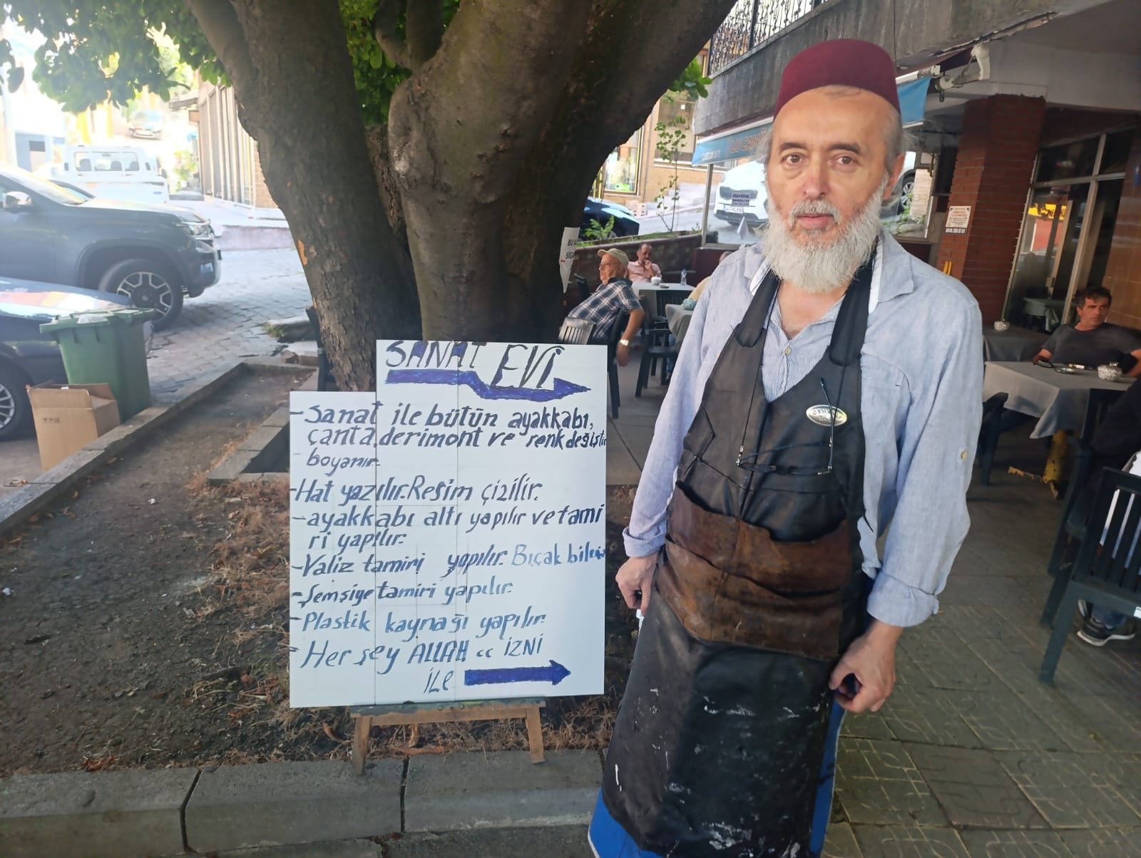 Köprübaşı Ulu Camii altındaki sanat dolu dükkânında ayakkabı ve valiz tamirinden deri mont boyamaya, resim çiziminden hat sanatına kadar birçok alanda üretim yapan Sevim, “Her şeyi Allah’ın izniyle yapıyorum” diyerek azmini ortaya koyuyor.