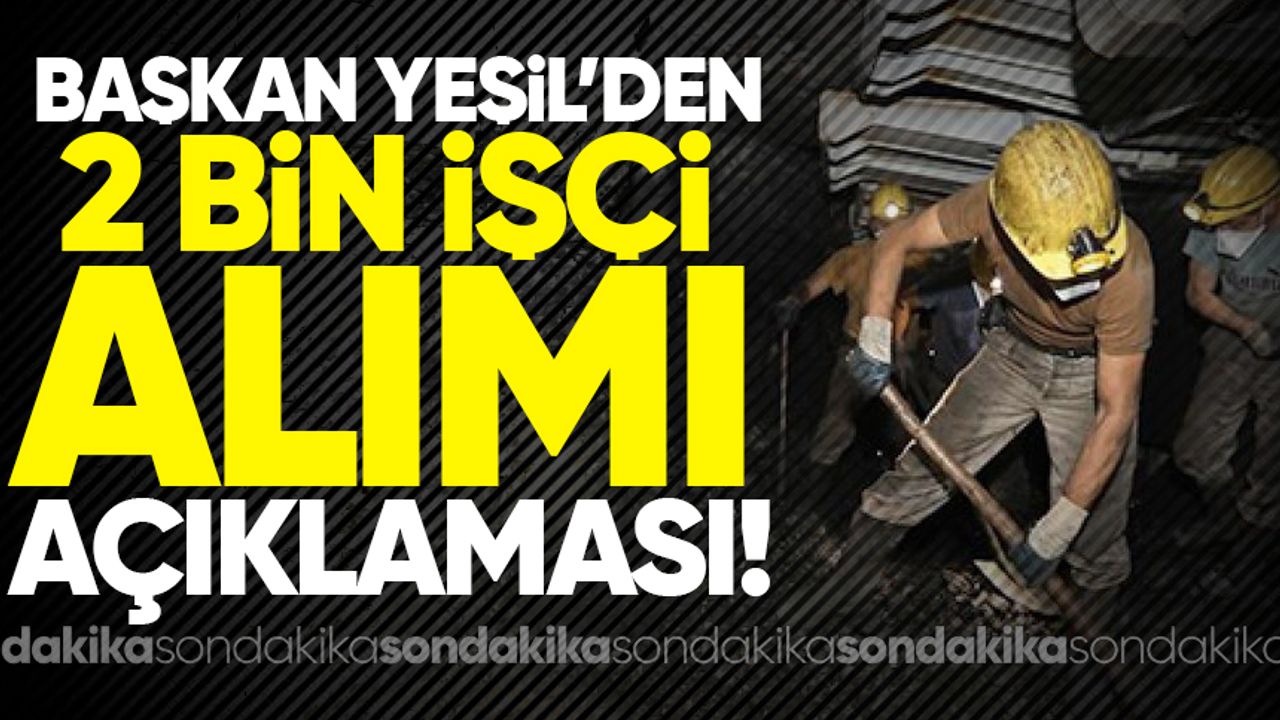 Genel Maden İşçileri Sendikası (GMİS) Genel Başkanı Hakan Yeşil, Cumhurbaşkanı Erdoğan tarafından açıklanan 2 bin işçi alımının hala tamamlanmadığını ve 26 yedeğin çağrılarak sürece dahil söyledi. Ayrıca işçi alımı tamamlanmadan yeni işçi alımının gerçekleşmeyeceğini belirten Başkan Yeşil, sürecin çok uzadığını kuruma ilettiklerini ifade etti.