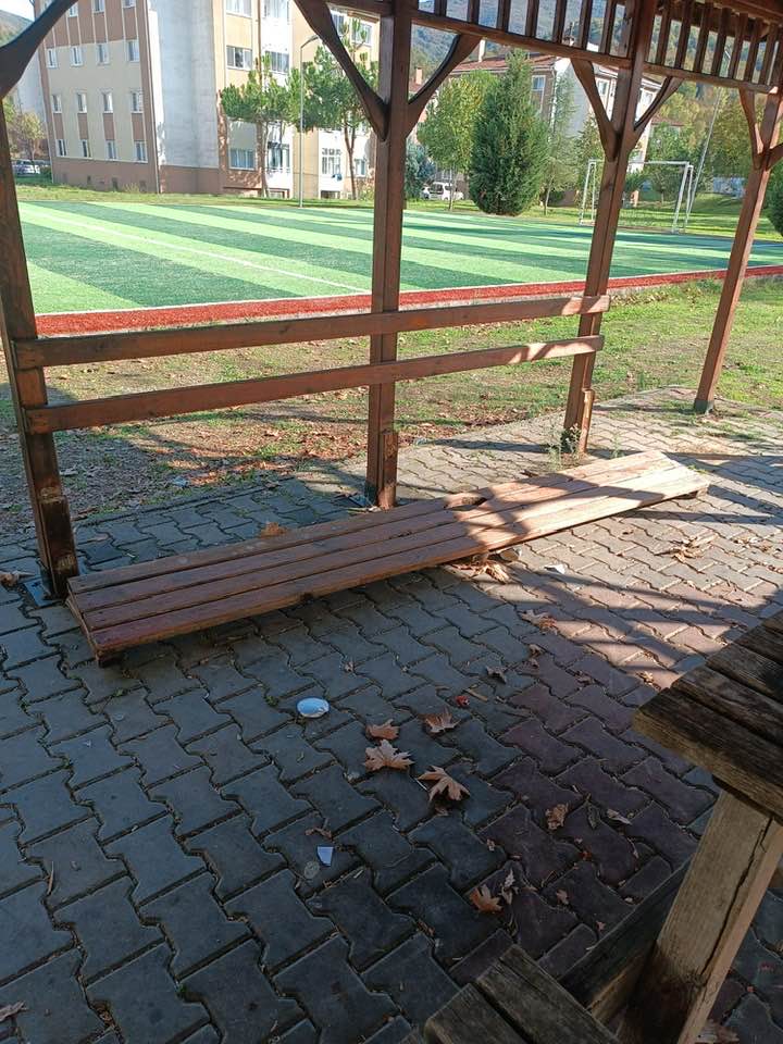 Çaydeğirmeni Beldesi’inde gece yarısı banklara zarar verildi. Belediye Başkanı vandalları bulana ödül verileceğini söyledi.