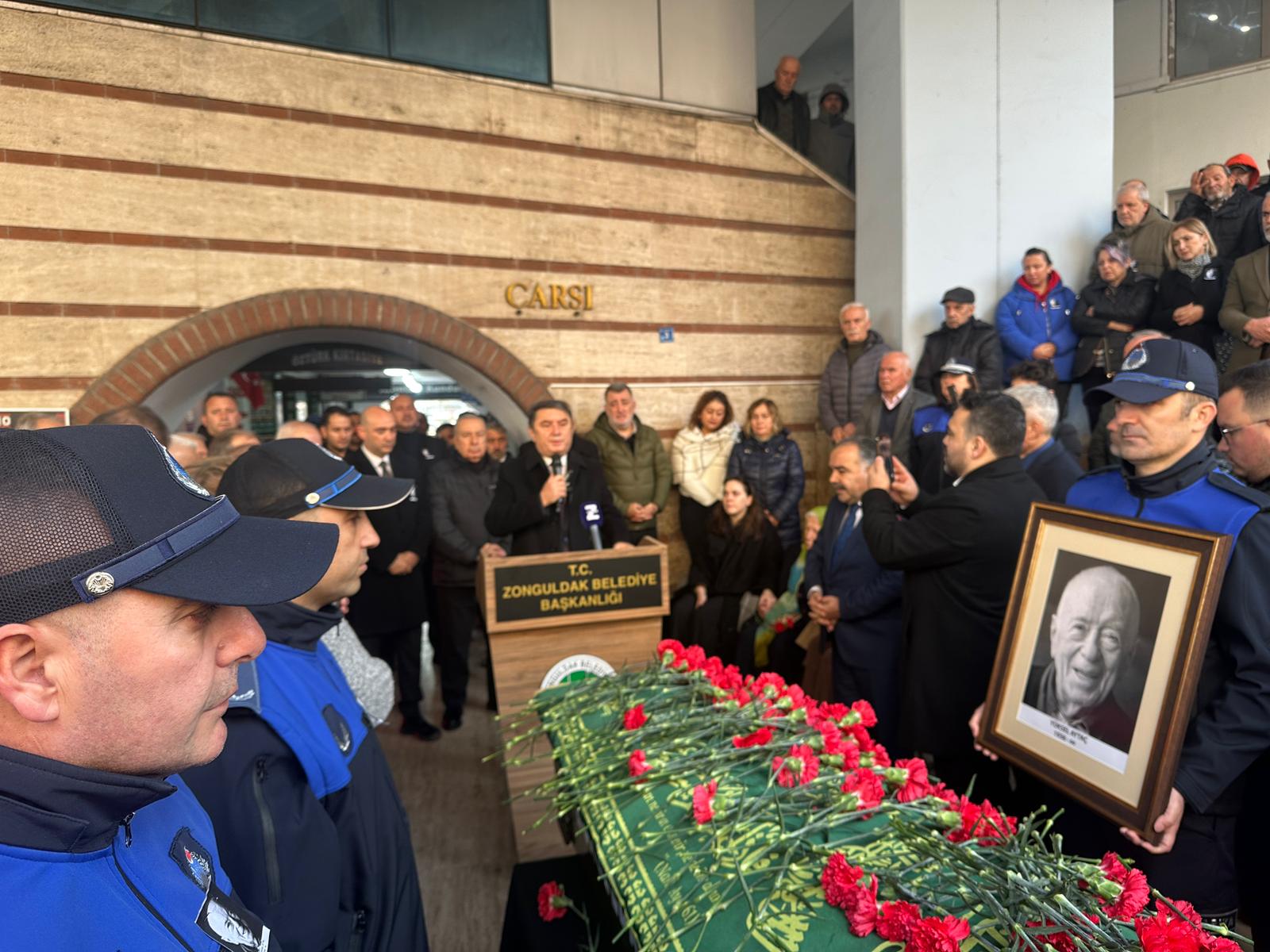Zonguldak Eski Belediye Başkanlarından merhum Yüksel Aytaç için Zonguldak Belediyesi hizmet binası önünde resmi tören düzenlendi.