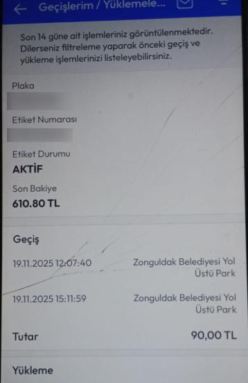 Zonguldak’ta bir vatandaş, belediyeye ait otoparka park ettikten sonra ilginç bir mağduriyet yaşadı. Aracını otoparka bırakan vatandaş, çıkışta kart ile 60 lira otopark ücreti ödedi. Ancak kısa süre sonra HGS hesabından da 90 lira çekildiğini görünce büyük şaşkınlık yaşadı.