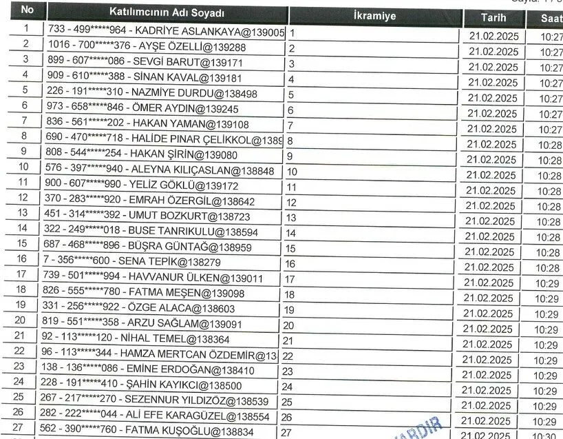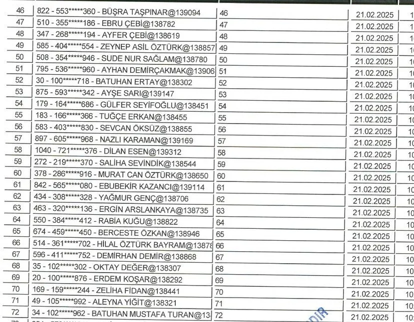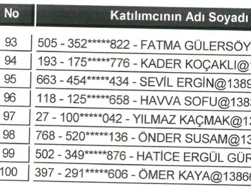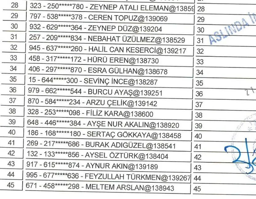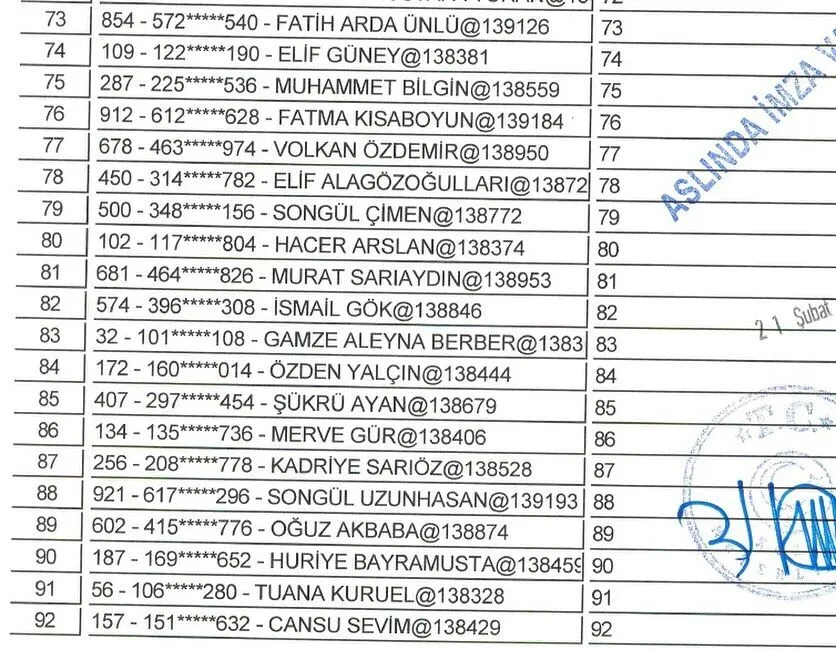 BEUN'A ALINACAK 100 KİŞİNİN İSİM LİSTESİ: