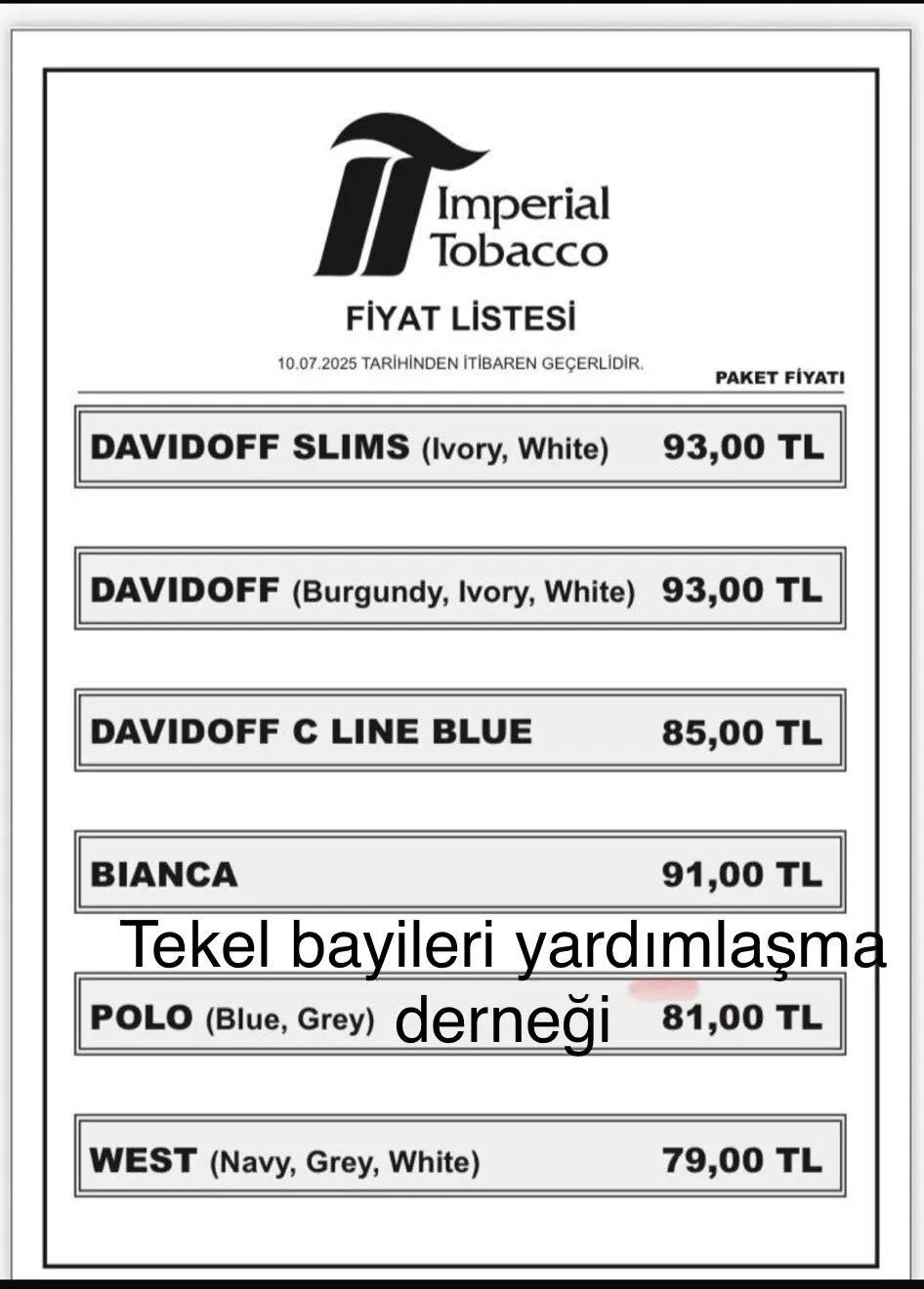 Imperial Tobacco sigara grubunun zamlı fiyat listesinden en düşük sigara 78 TL olurken en yüksek fiyatlı sigara 91 lira oldu.