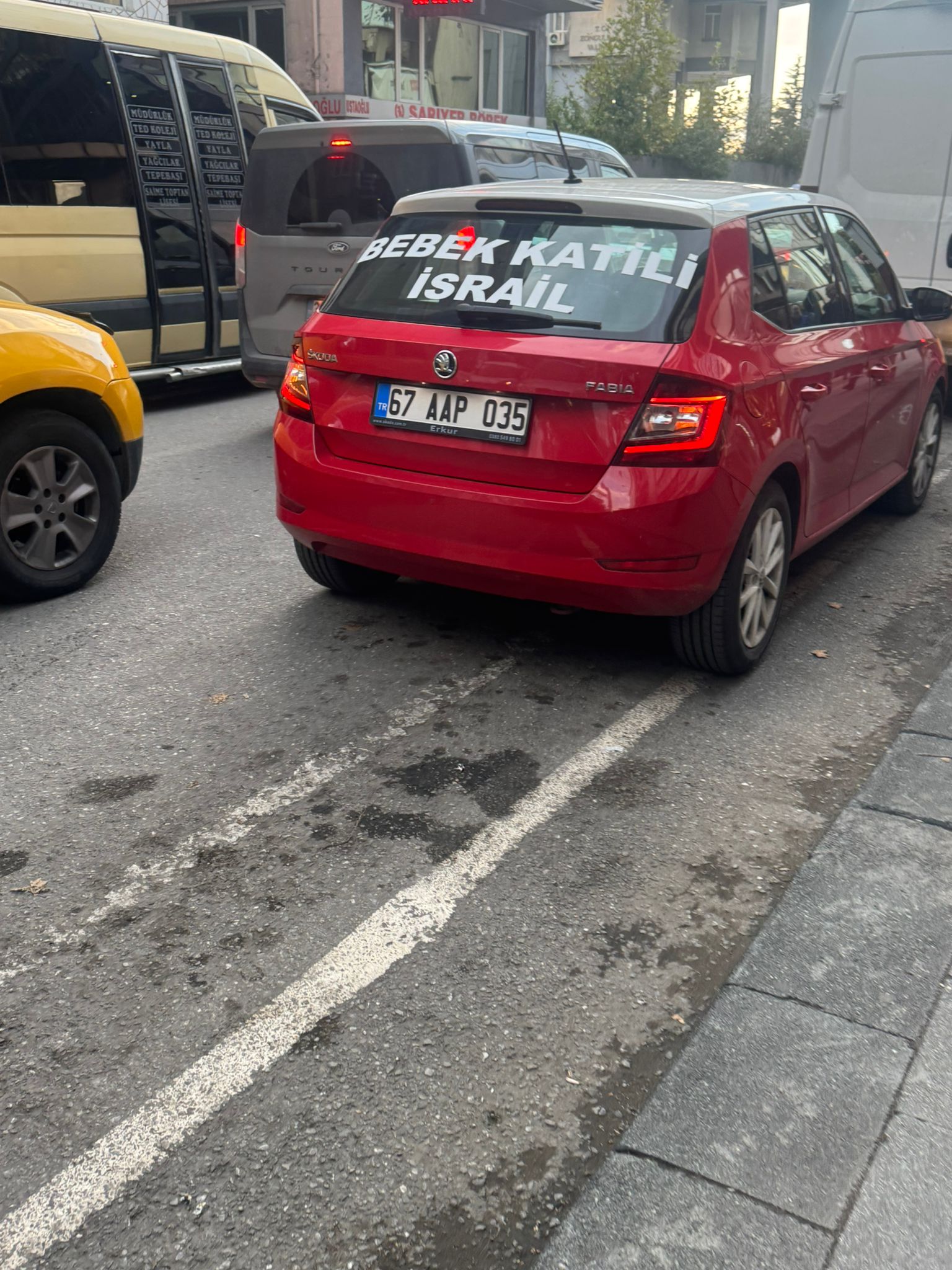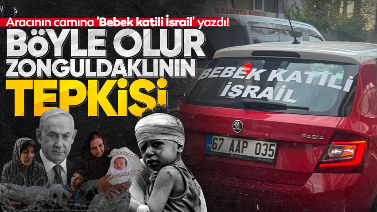 Zonguldak’ta ikamet eden ve ismi öğrenilemeyen vatandaş park ettiği aracının arkasına büyük harflerle yazdırdığı "Bebek Katili İsrail" ifadesi ile herkesin dikkatini çekti.