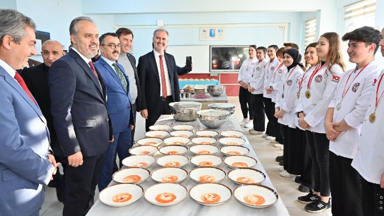 Bursa Büyükşehir Belediye Başkanı Alinur Aktaş, ‘20. Uluslararası Mutfak Günleri’nde 6 altın, 8 gümüş ve 1 bronz madalya kazanarak ‘En İyi Lise’ unvanını alan Hacı Sevim Yıldız 4 Mesleki ve Teknik Anadolu Lisesi’ni ziyaret ederek öğrencileri tebrik etti.BURSA (İGFA) - Okul öncesi eğitimden üniversiteye kadar eğitimin her kademesinde önemli hizmetleri hayata geçiren Bursa Büyükşehir Belediyesi, ücretsiz YKS kurslarından burs desteğine, gençlik merkezlerinden millet kıraathanelerine kadar her alanda gençleri desteklemeye devam ediyor.