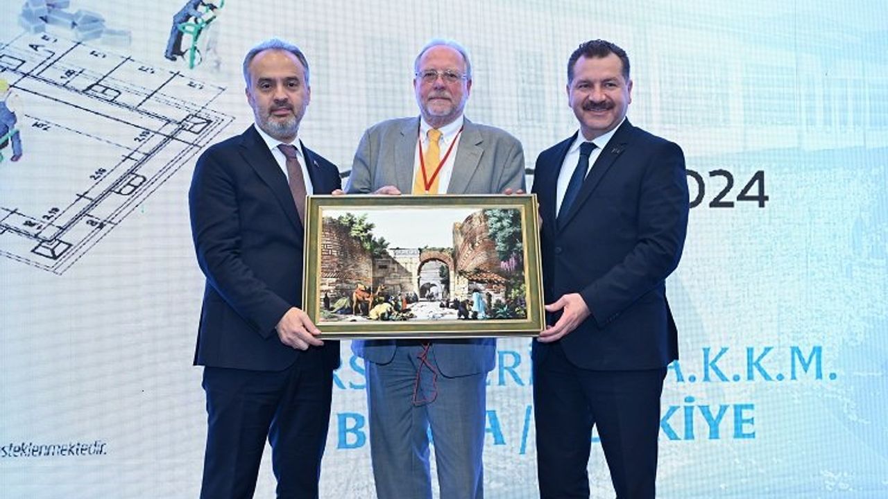 Açılış konuşmalarının ardından Bursa Büyükşehir Belediye Başkanı Alinur Aktaş ve Balıkesir Büyükşehir Belediye Başkanı Yücel Yılmaz, Prof. Karl-Heinz Noetel’e günün anısına tarihi İznik surlarından Lefke kapının ipeğe işlenmiş tablosunu hediye etti.