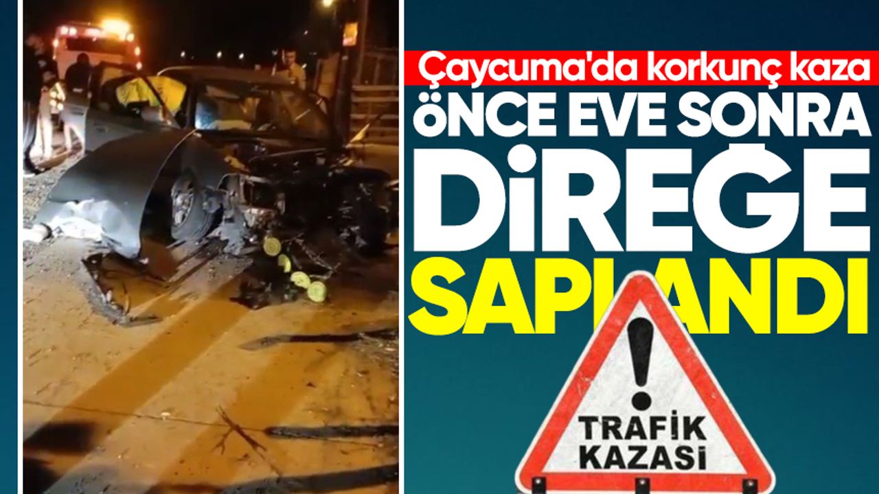 Çaycuma ilçesinde gece saatlerinde meydana gelen korkunç kazada sürücüsünün direksiyon hakimiyetini kaybeden otomobil önce eve, sonrasında ise direğe çarparak durabildi. Kazada 1'i ağır olmak üzere üç kişi yaralandı. Kazanın ardından olay yerine ekipler sevk edildi.