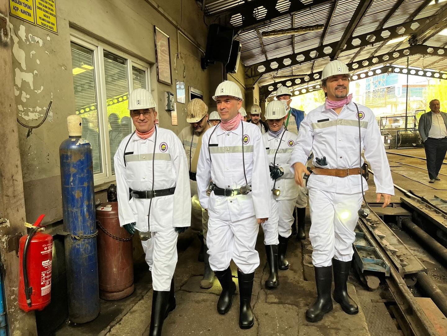 Ziyaret kapsamında yer altındaki üretim alanlarında çalışan madencilerle bir araya gelen heyet, işçilerin sorunlarını, taleplerini ve beklentilerini dinledi.
