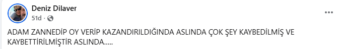 “Adam zannedip oy verip kazandırıldığında aslında çok şey kaybedilmiş ve kaybettirilmiştir aslında…..”