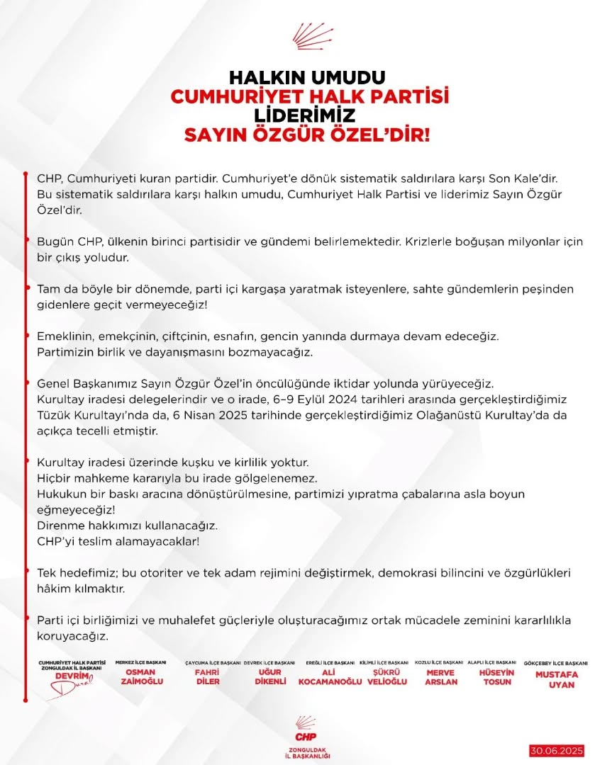CHP Zonguldak İl Örgütü olarak yapılan paylaşım şu şekilde;