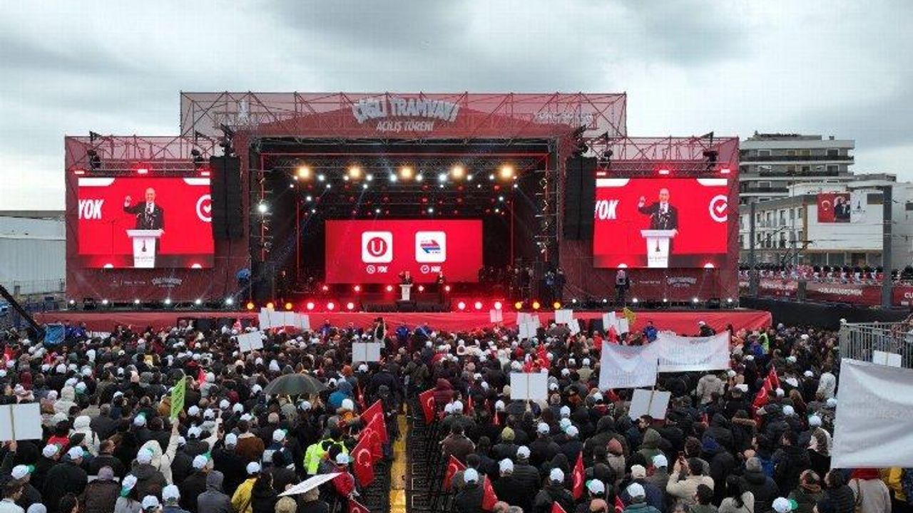 İzmir'de Ulaştırma Bakanlığı'nın yaptığı bir metro yatırımı olmadığını söyleyen Başkan Soyer, “Sadece 5 yıllık görev sürem boyunca İzmir’de 1 milyar 235 milyon euroluk raylı sistem yatırımı yapıyoruz, yani bugünkü rayiçle yaklaşık 41 milyar lira. Üstelik tüm bunları sadece İzmir’de bizim Belediyemiz başarmadı. Cumhuriyet Halk Partili Belediyeler, İstanbul’da, Ankara’da, Eskişehir’de ve tüm belediyelerimizde bir yerel yönetim destanı yazdı. 5 yıl gibi kısa bir sürede metrolar, yollar yaptık; sosyal belediyeciliği 11 büyükşehir hep birlikte omuz omuza yeniden ayağa kaldırdık. Peki bu beş yılda 5 yılda merkezi hükümetin İzmir’e layık gördüğü raylı sistem yatırımı ne kadar biliyor musunuz? 3 milyar lira değil. 3 milyon lira da değil. 300 bin lira da değil. 30 bin lira bile değil. Sadece 3 bin lira kardeşlerim. 3 bin lira, 3 bin! 20 gevrek parası. Biliyoruz ki şimdi şu saatlerde bundan 10 yıl önce, 2014 yılında temelini attıkları şehir hastanesinin açılışını nihayet yarım yamalak yapmaya çalışıyorlar. Üstelik bunu, Hazine garantili, sermayedarın bütün riskini, zararını halkın sırtına yükleyen, 5’li çetelerin servetine servet katan bir sistemle yapıyorlar. Bu ülkeyi, gençsiz, mühendissiz ve doktorsuz bıraktıktan sonra, gelecek hayallerini yok edip insanları küstürdükten sonra bina yapsan ne olur yapmasan ne olur” dedi.
