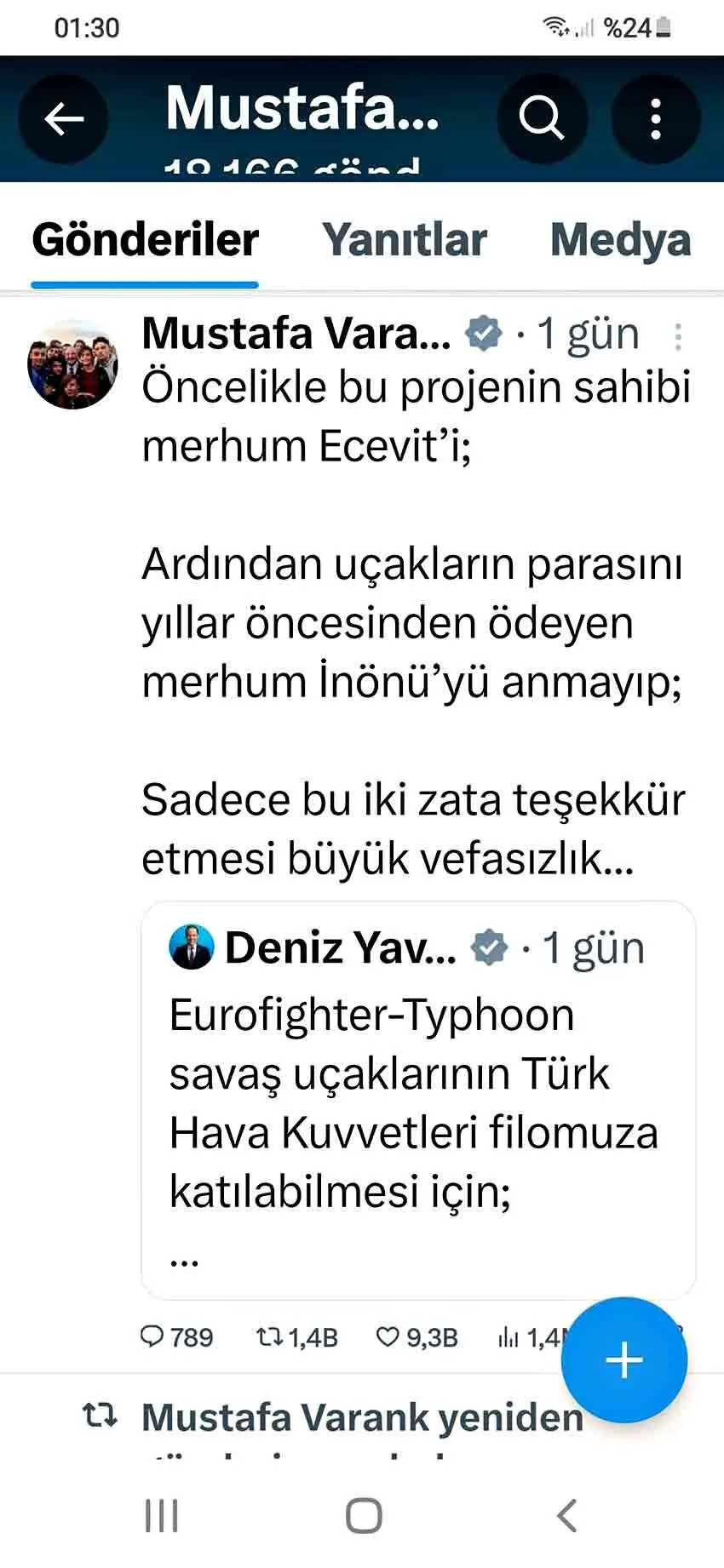 Mustafa Varank, Deniz Yavuzyılmaz için sosyal medyasında “Öncelikle bu projenin sahibi merhum Ecevit’i, ardından uçakların parasını yıllar öncesinden ödeyen İnönü’yü anmayıp, sadece bu iki zata teşekkür etmesi büyük vefasızlıktır” açıklaması yaptı.