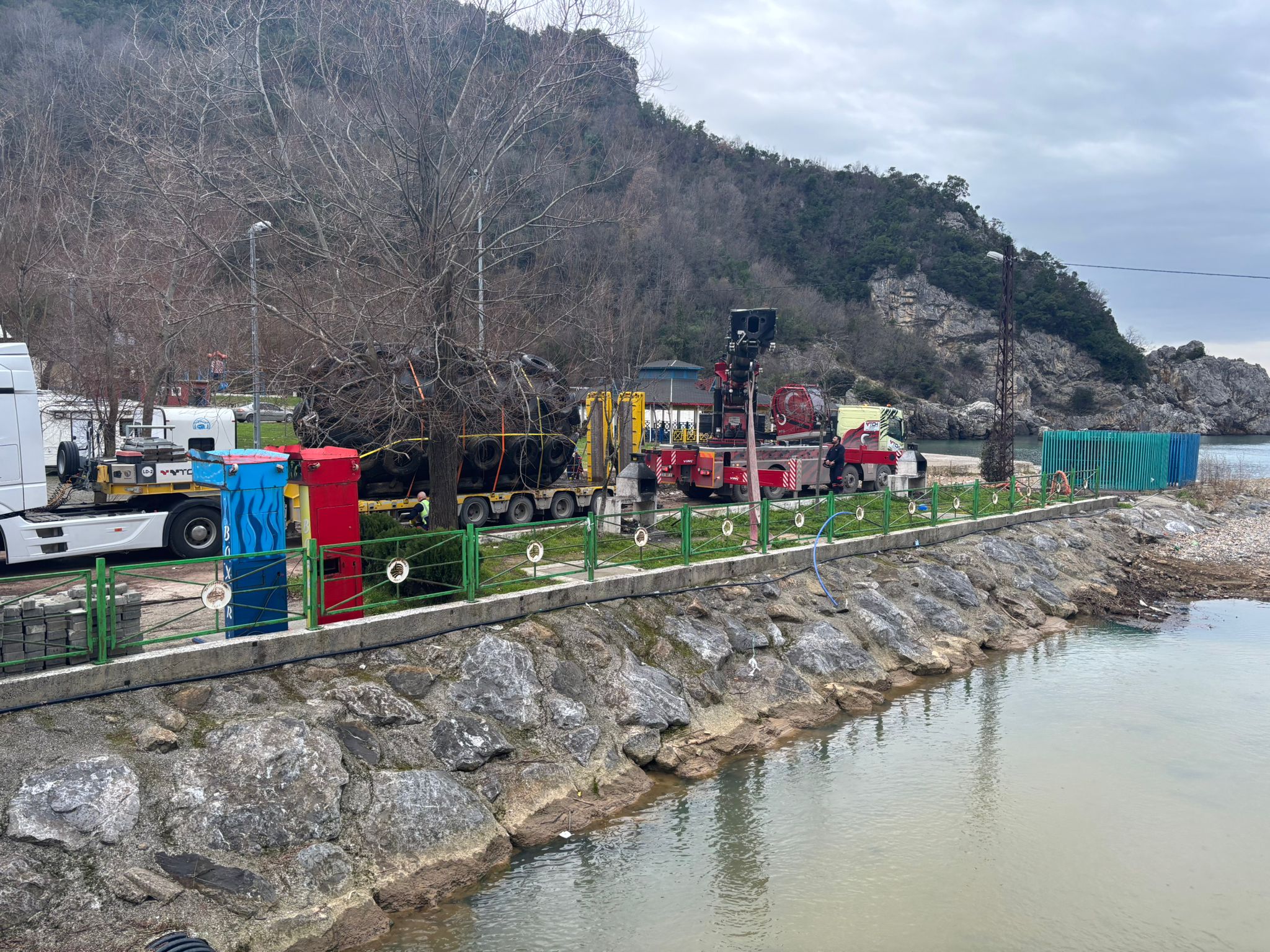 Zonguldak’ın Kozlu ilçesine bağlı Değirmenağzı Plajı’nda, kuvvetli fırtınanın etkisiyle denize sürüklenen ve dere yatağına kadar ulaşan dev usturmaça, devlet hazinesine kazandırıldı.