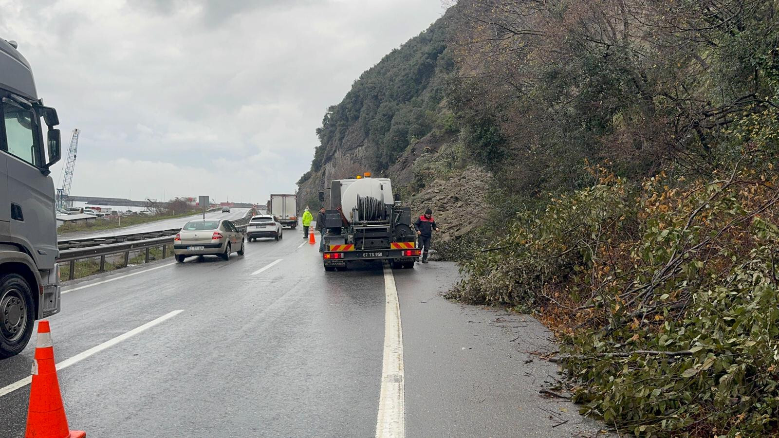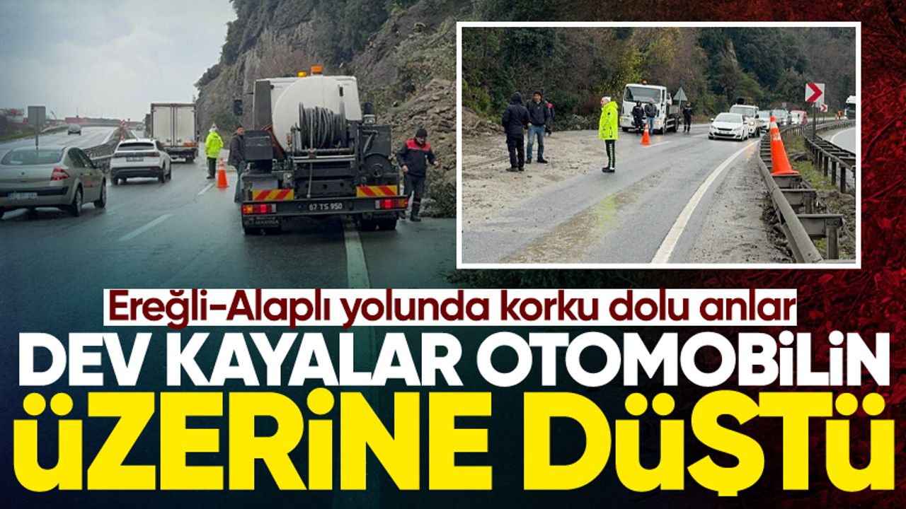 Karadeniz Ereğli ve Alaplı ilçelerini birbirine bağlayan kara yolu, bu sabah saat 07.40 sularında büyük bir tehlikeye sahne oldu. Bölgede etkili olan yağışlar, Tersaneler mevkiindeki yumuşak zemini harekete geçirerek dev kaya parçalarını yola indirdi.