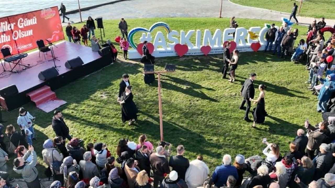 Belediye Başkanı Halil Posbıyık ve eşi Neriman Posbıyık, sevgilerini Ereğlilerle paylaştı. Canlı müzik eşliğinde her yaştan sevgililer gönüllerince eğlendi. Bugün evlenen 3 çift, mutluluklarını Ereğlilerle paylaştı. Kdz. Ereğli Belediyesi Kültür, Sanat ve Sosyal İşler Müdürlüğü, insanların bir araya geldiği, gülümsediği, birbirine sevgiyle dokunduğu anları çoğaltmak için 14 Şubat Sevgililer Günü’nde sahilde Ereğli’yi buluşturdu. Sahilde bulunan Aşkım Ereğli yazısının etrafında yapılan etkinliğe Belediye Başkanı Halil Posbıyık, eşi Neriman Posbıyık ile birlikte katıldı. Etkinlikte her yaştan sevgililer gönüllerince eğlendi. Bugün evlenen 3 çift, mutluluklarını Ereğlilerle paylaştı. Başkan Posbıyık ve eşi Neriman Posbıyık, katılanlara gül takdim etti. Canlı müzik, dans gösterileri, sürpriz ikramlıklar, fotoğraf köşesi, sevgi duvarının yer aldığı etkinlikte dilek balonları gökyüzüyle buluştu.