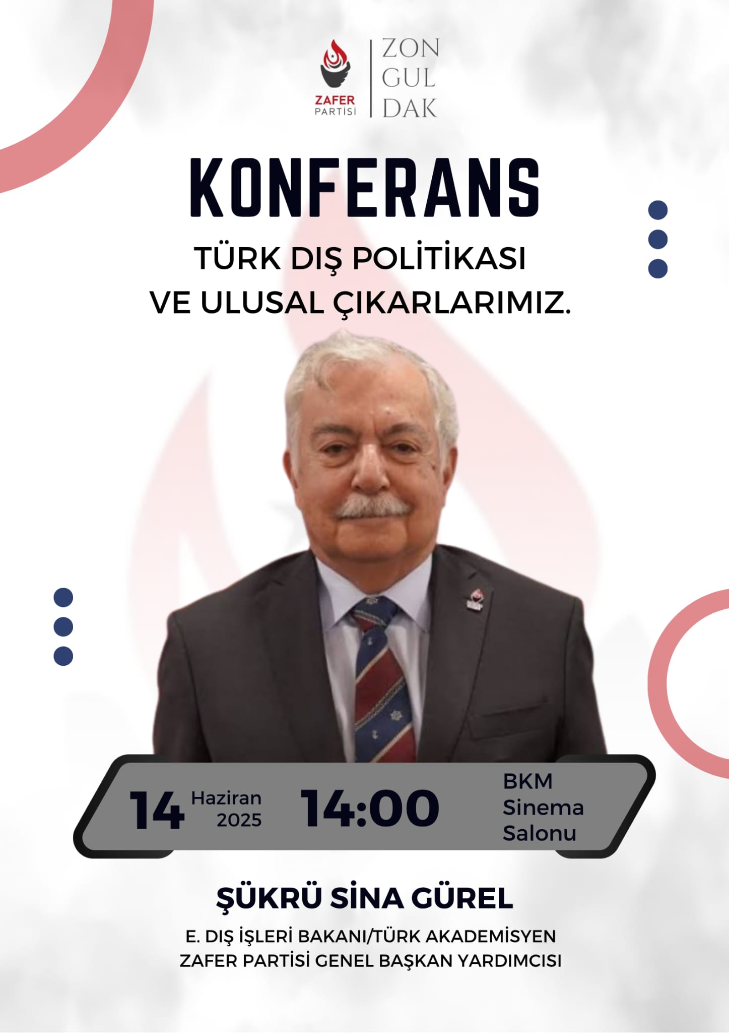 Genel Başkan Yardımcısı Şükrü Sina Gürel 14 Haziran 14:00'da Zonguldak BKM Sinema Salonu'nda konferans verecek.