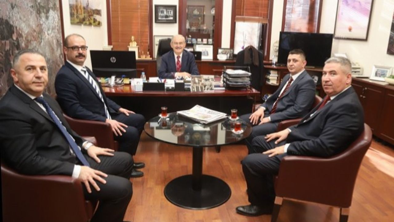 Minibüsçüler Odası Başkanı Coşkun Güvenç ve beraberindeki yönetim kurulu üyeleri, Eskişehir Büyükşehir Belediye Başkanı Prof. Dr. Yılmaz Büyükerşen’i ziyaret ettiler.ESKİŞEHİR (İGFA) - Eskişehir Büyükşehir Belediye Başkanı Yılmaz Büyükerşen’e yönelik ziyaretler devam ediyor. Bu kapsamda Minibüsçüler Odası Başkanı Coşkun Güvenç ve beraberindeki yönetim kurulu üyeleri, Başkan Büyükerşen ile bir araya geldiler.