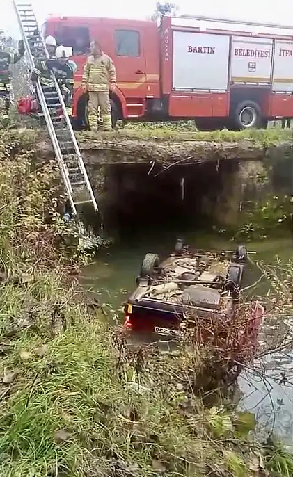"Bartın’da sabah saatlerinde meydana gelen trafik kazasında bir otomobil, sürücüsünün kontrolünü kaybederek yol kenarındaki dereye düşüp ters dönmüştür. İhbarın 09.14’te ulaşmasının ardından Bartın Belediyesi İtfaiye ekipleri 09.21’de olay yerine ulaşmış, araçtaki bir vatandaş çıkarılmış; maalesef iki vatandaşımızın olay yerinde hayatını kaybettiği belirlenmiştir.