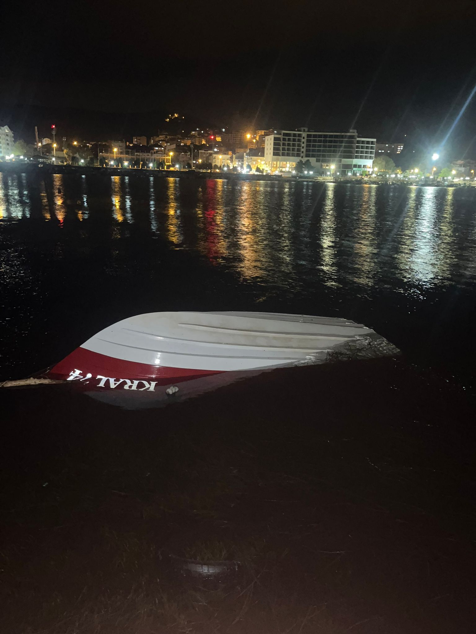 Yaşanan olay sonrasında balıkçı barınağının içerisinde olan bir balıkçı teknesi ise hortum sonucu alabora oldu ve battı.