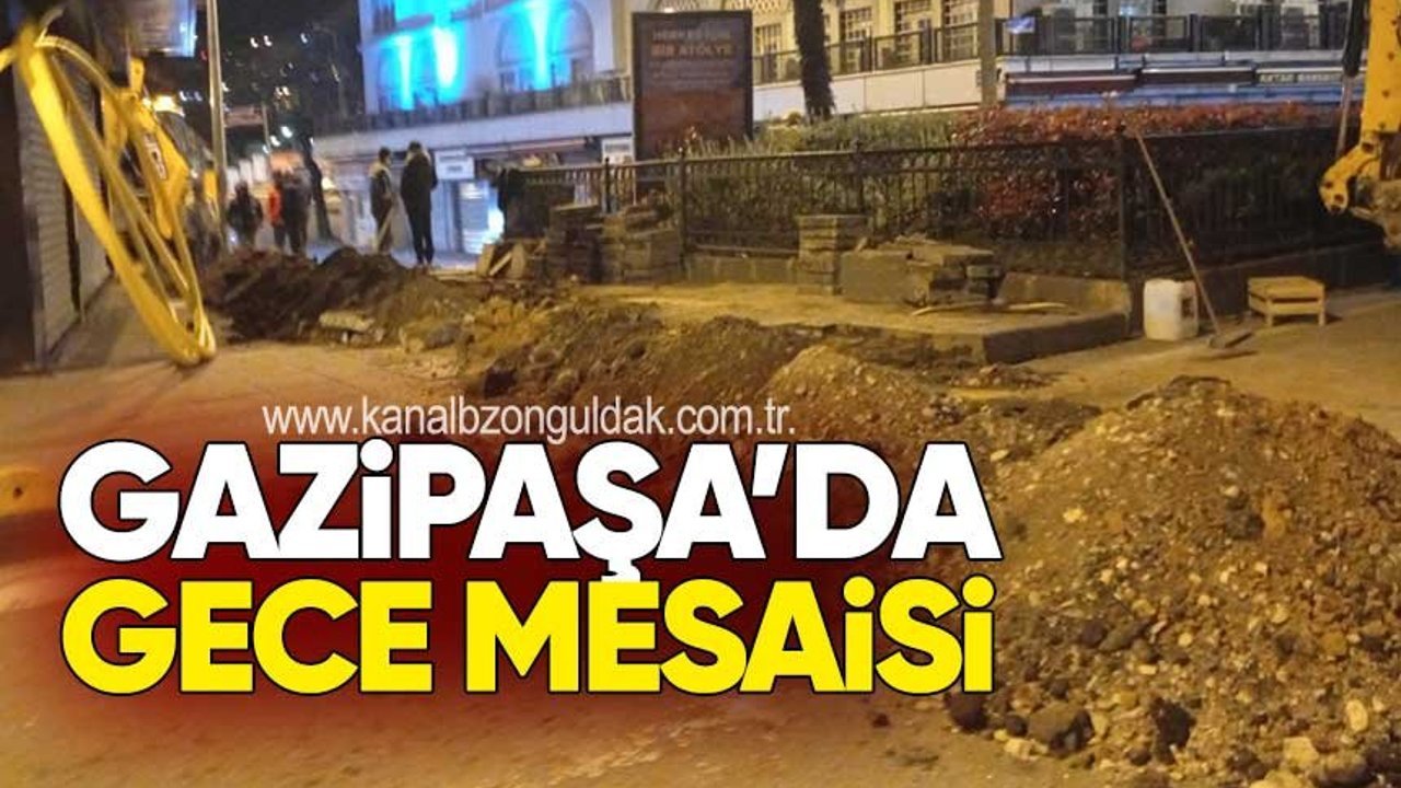 Zonguldak Belediyesi’ne bağlı ekipler, gece saatlerinde Gazipaşa Caddesi’nde altyapı çalışması gerçekleştirdi.