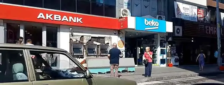 Zonguldak’ta kent merkezinin en işlek noktalarından biri olan Gazipaşa Caddesi’nde tehlike dolu anlar yaşandı. bir bankaya ait olan pano aniden yerinden koparak kaldırıma düştü.