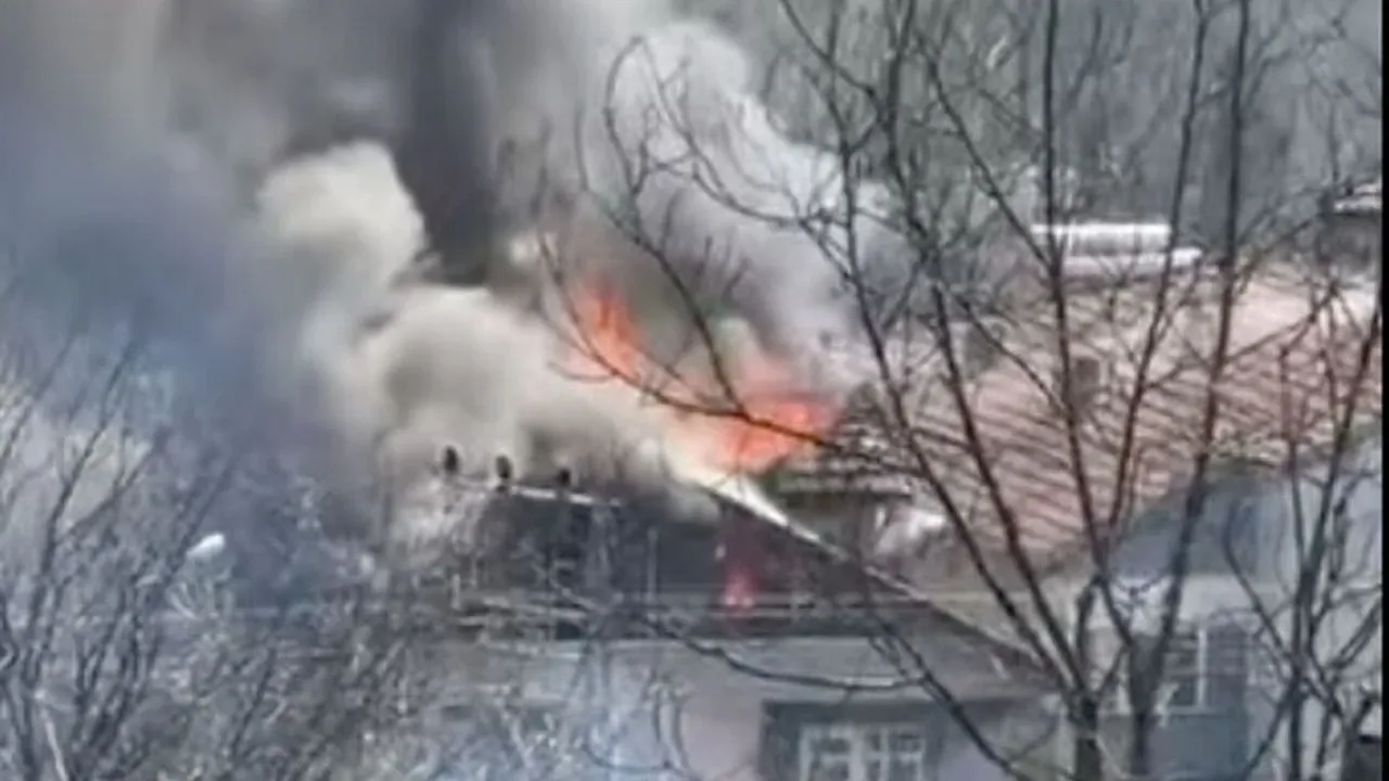 Zonguldak'ın Karadeniz Ereğli İlçesine bağlı Gebe Köyü'nde iki katlı bir evin çatısında yangın çıktı.