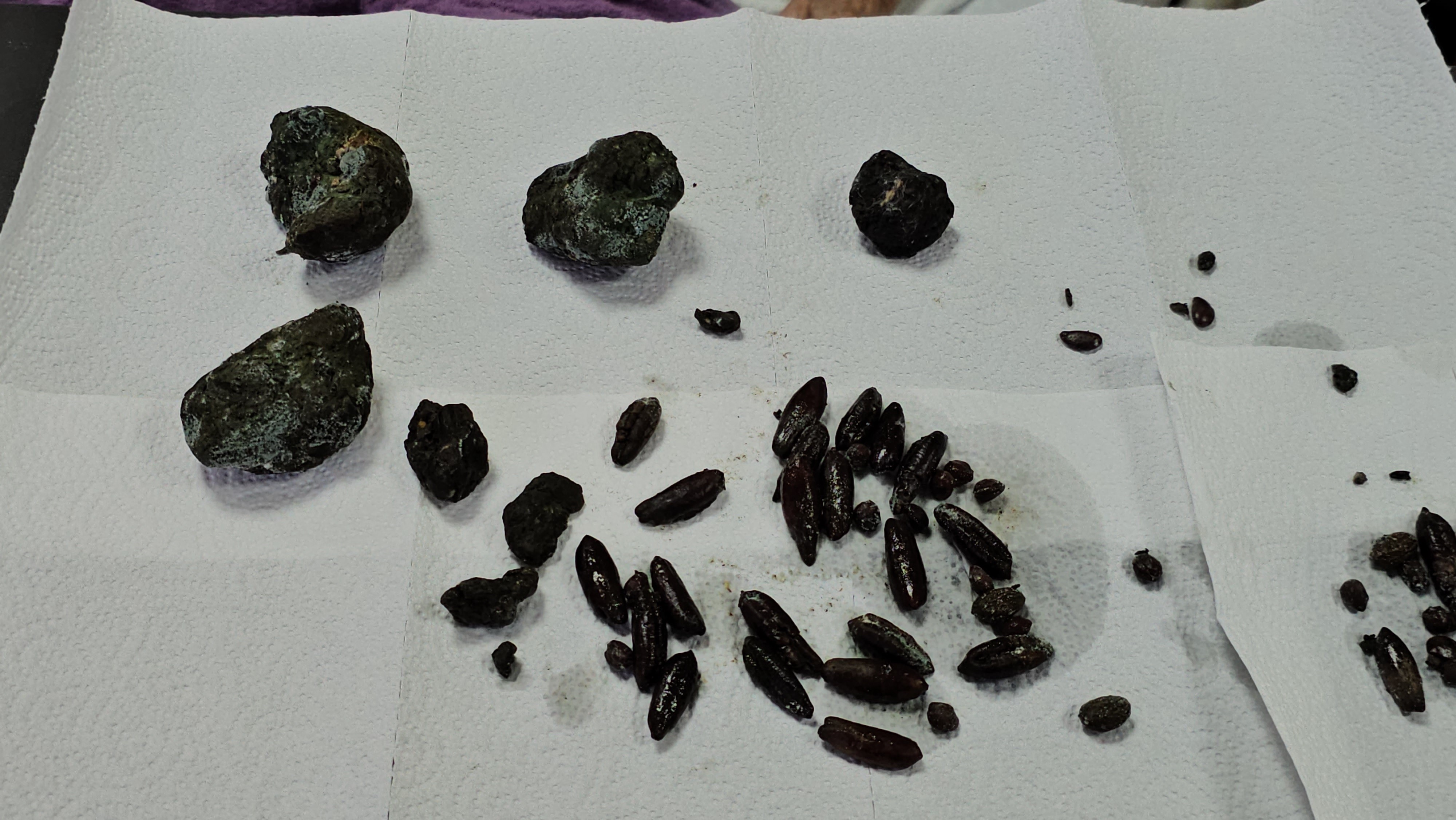 "Hasta bize dış merkezden bağırsak tıkanması şikayetiyle gönderildi. Hastayı biz kabul ettiğimizde yapılan tahlillerinde, tomografisinde midesinde ve ince bağırsak içerisinde yabancı cisimler tespit ettik. Kan seviyeleri çok yüksekti. Ondan dolayı ve karın ağrısı olması sebebiyle hastamızı ameliyata aldık. İnce bağırsakta çok fazla taş tespit ettik. Bağırsağı çürüttüğünü gördük. Hatta deldiğini gördük. Çürüyen bağırsak kısımlarını çıkarttık. Yerine çürümeyen kısımları bağladık. Daha sonrasında midesinde de taşlar tespit ettik. Bunları da çıkarttık. Yaklaşık 5,5-6 santimetrelik taşları midesinden çıkarttık. Çok fazla sayıda gördüğümüzde hurma ve zeytin çekirdekleri olduğunu gördük. Bunların hepsini mide ve ince bağırsak içerisinden temizledik. Daha sonra hastamızın ameliyatını tamamladık. 5 günlük yoğun bakım takibinden sonra servise aldık. Sıvı gıdaya başladık. Hastamızın şu anda genel durumu iyi. Bu tür katı gıdalar, çekirdekler, taşlaşmış gıdalar hem bağırsak hem mide için zararlı. Bu tür çekirdekleri yutmak sağlıklı değil. Mide ve bağırsaklarda delinmeye sebep olabilir. O yüzden mümkün olduğunca çekirdekleri çıkartmayı tavsiye ediyoruz."