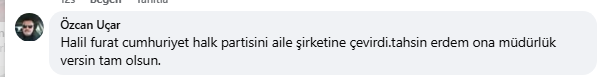 – “Halil Furat Cumhuriyet Halk Partisi’ni aile şirketine çevirdi. Tahsin Erdem ona müdürlük versin tam olsun.”