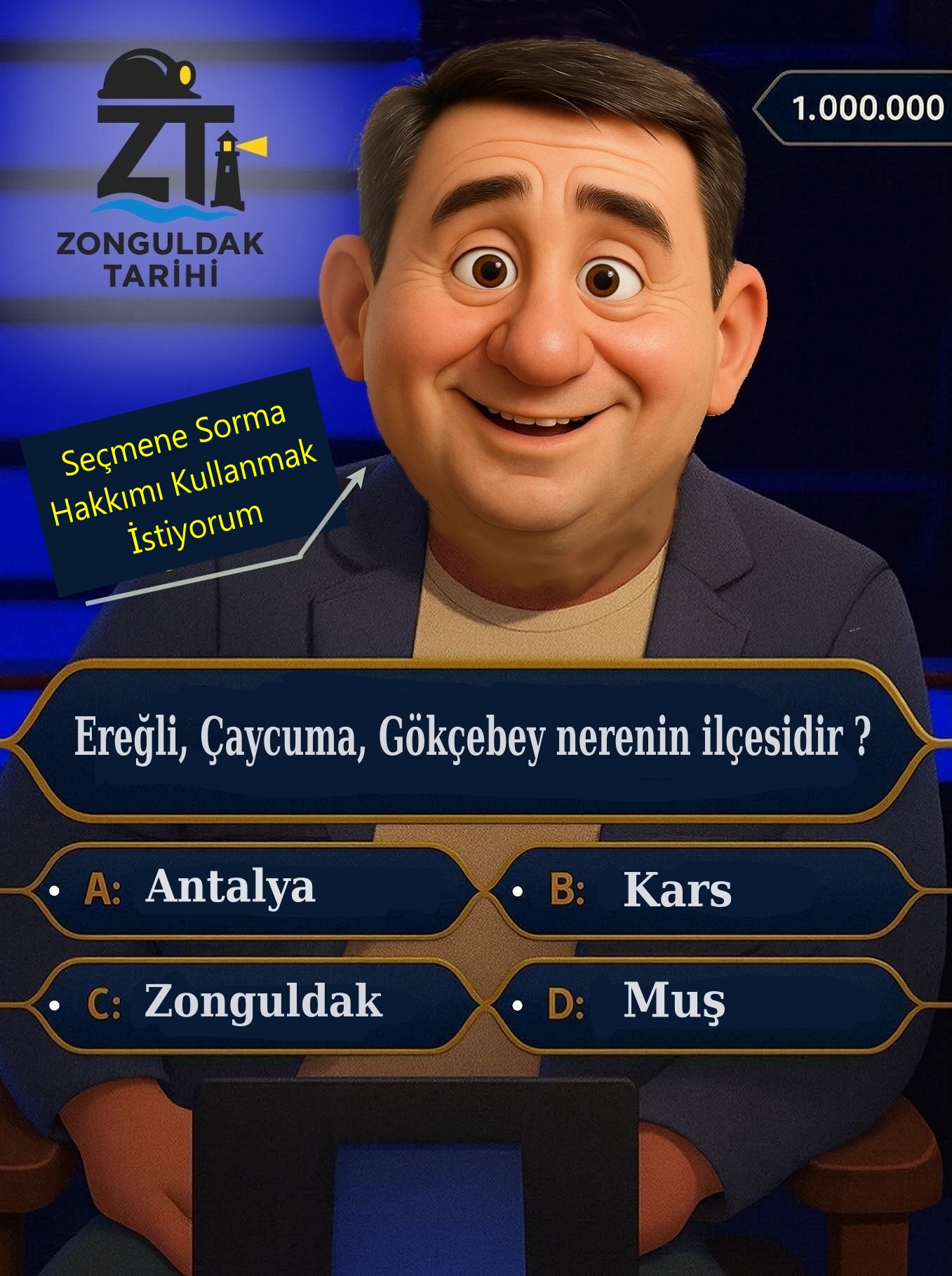 “YARIŞMACIMIZ 1 MİLYONLUK SORUDA TAKILDI