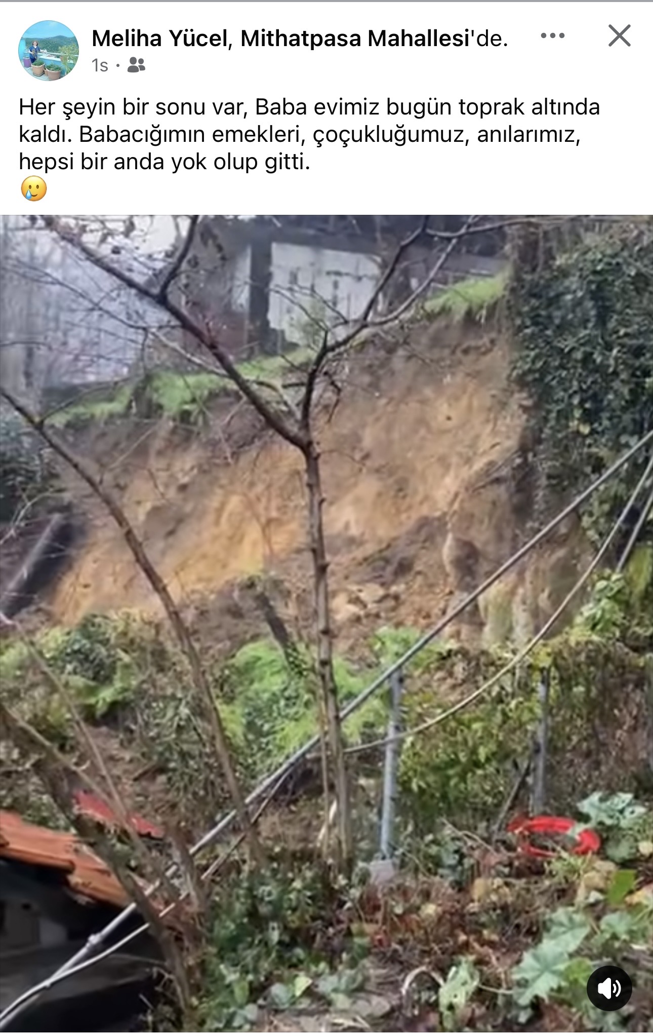 “Her şeyin bir sonu var. Baba evimiz bugün toprak altında kaldı. Babacığımın emekleri, çocukluğumuz, anılarımız… Hepsi bir anda yok olup gitti.”