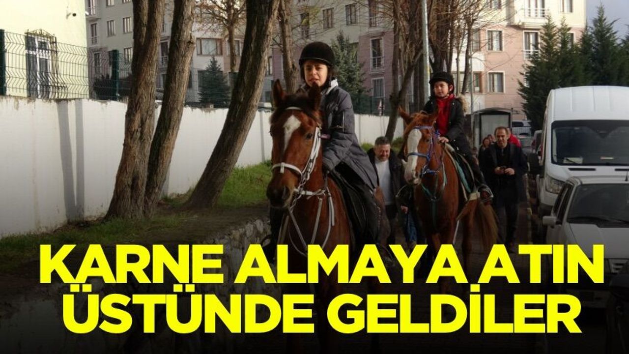 İki kardeş karnelerini atlarla almaya geldi