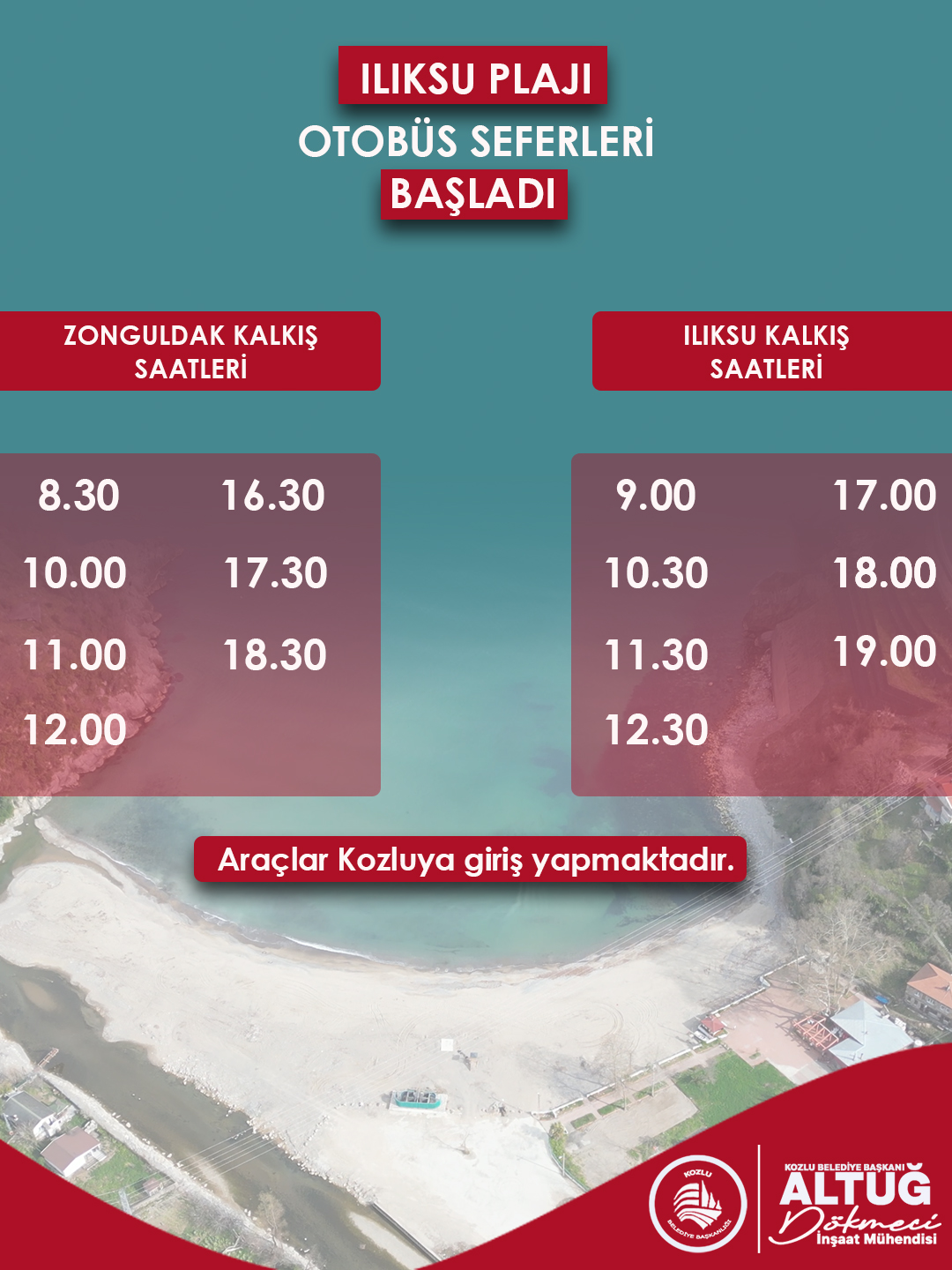 Yaz sezonunun başlamasıyla birlikte Kozlu Belediyesi, Ilıksu Plajı’na ulaşımı kolaylaştırmak amacıyla Zonguldak ile Ilıksu arasında otobüs seferlerini başlattı.