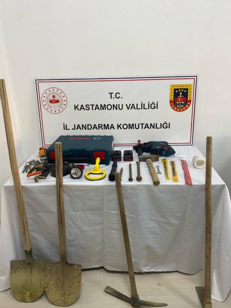 Edinilen bilgiye göre, Kastamonu İl Jandarma Komutanlığı ekipleri tarafından, tarihi eser kaçakçılığının önlenmesine yönelik yapılan çalışmalar neticesinde, M.A., K.C. ve O.A. isimli şahısların Taşköprü ilçesinde ormanlık alanda izinsiz kazı yaptığı tespit edildi. 3 şahıs jandarma ekiplerince yapılan baskında suçüstü yakalandı. İzinsiz kazı yaptıkları alanda yapılan aramada ise kazı malzemeleri ele geçirildi.