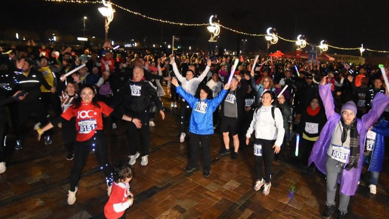 İzmir Büyükşehir Belediyesi, yılın en uzun gecesi olan 21 Aralık’ta bir kez daha geleneksel gece koşusu düzenledi.İZMİR (İGFA) - İzmir Büyükşehir Belediyesi Gençlik ve Spor Kulübü’nün yılın en uzun gecesinde düzenlediği “En Uzun Koşu” İzmirliler tarafından bir kez daha ilgiyle karşılandı. Konak Saat Kulesi önüne gelerek ısınan binlerce İzmirli 21 Aralık saat 21.12’de işaret fişeğiyle beraber koşuya Konak Vapur İskelesi’nden başladı. Koşunun startını İzmir Büyükşehir Belediyesi Gençlik ve Spor Hizmetleri Dairesi Başkanı Hakan Orhunbilge, İzmir Büyükşehir Belediyesi Gençlik ve Spor Kulübü Yönetim Kurulu Üyesi Ersan Odaman ve İzmir Büyükşehir Belediyesi Gençlik ve Spor Hizmetleri Dairesi Başkanlığı Spor ve Şube Müdürü Bahadır Eroğlu yaptı.