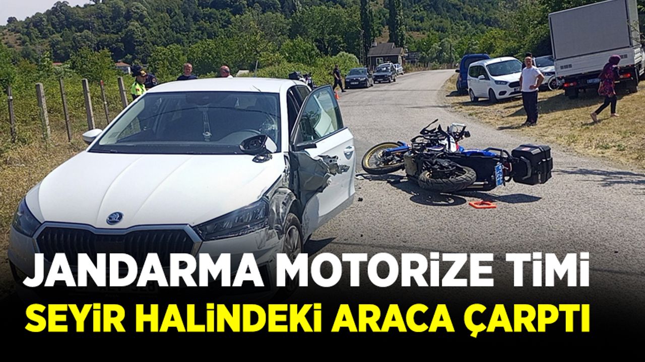 Zonguldak’ın Çaycuma ilçesine bağlı Yukarıdere Köyü’nde jandarma motorize timine ait motosikletin bir otomobile çarpması sonucu trafik kazası meydana geldi. Kazada ölen ya da ciddi şekilde yaralanan olmadı.
