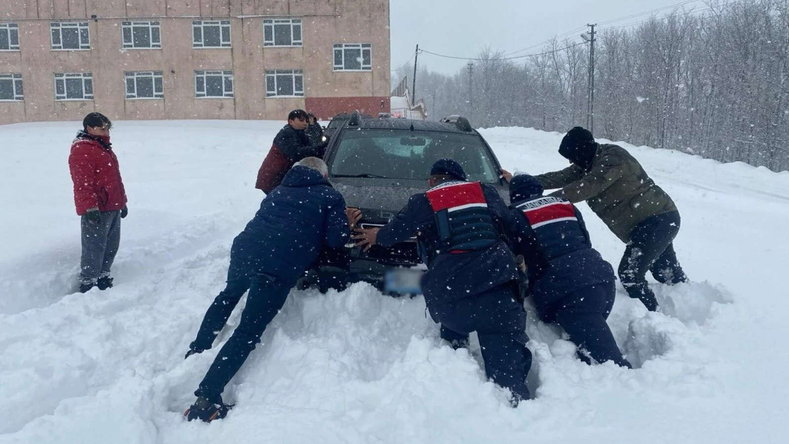 Zonguldak ve Bartın genelinde etkili olan yoğun kar yağışının ardından geriye fotoğraflar kaldı. Yolda mahsur kalan vatandaşların yardımına jandarma ekipleri koştu.