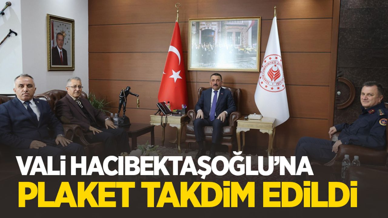 Ziyarette Zonguldak Valisi Osman Hacıbektaşoğlu'na plaket takdim edildi.