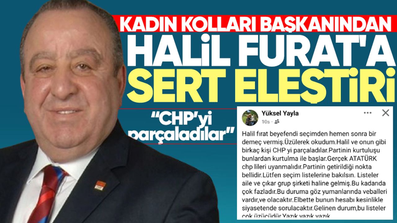 CHP eski Kadın Kolları Başkanı Yüksel Yayla, Halil Furat hakkında dikkat çekici açıklamalarda bulundu. Yayla, Halil Furat'ın seçim sonrasında yaptığı bir demece bulunarak sert eleştirilere yöneldi.