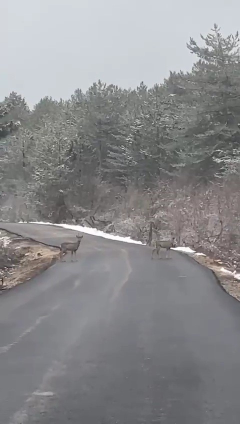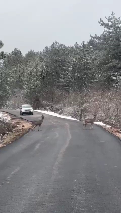 Karabük'ün Ovacık ilçesinde yola çıkan karacalar cep telefonu kamerasıyla görüntülendi.