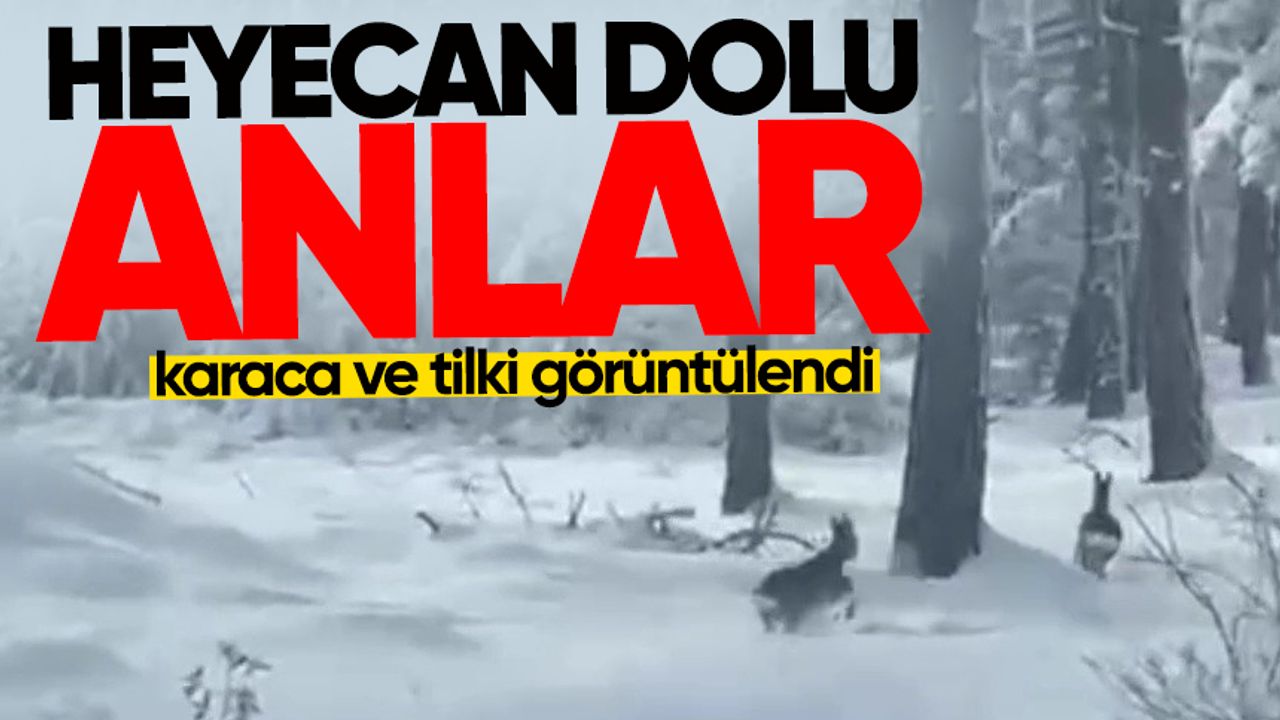 Ovacık ilçesinde aracıyla ilerleyen bir kişi, karla kaplı ormanlık alanda iki karaca olduğunu fark etti. Araç sesini duyunca karla kaplı arazide kaçmaya başlayan karacalar cep telefonu kamerasıyla görüntülendi.