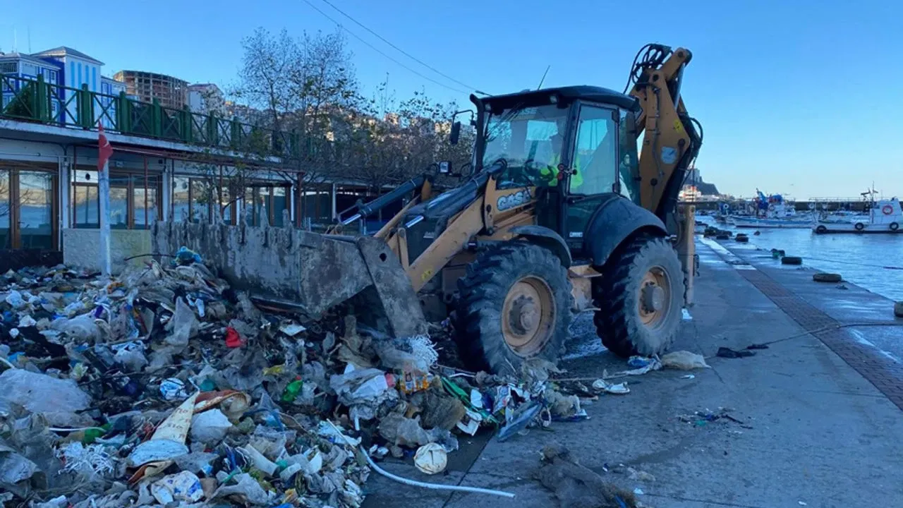 Şiddetli fırtına nedeniyle dalgaların sürükleyerek liman sahasına taşıdığı çeşitli atık ve çöpler Kozlu Belediyesi Temizlik İşleri Müdürlüğü ekipleri tarafından temizlenmeye başladı.