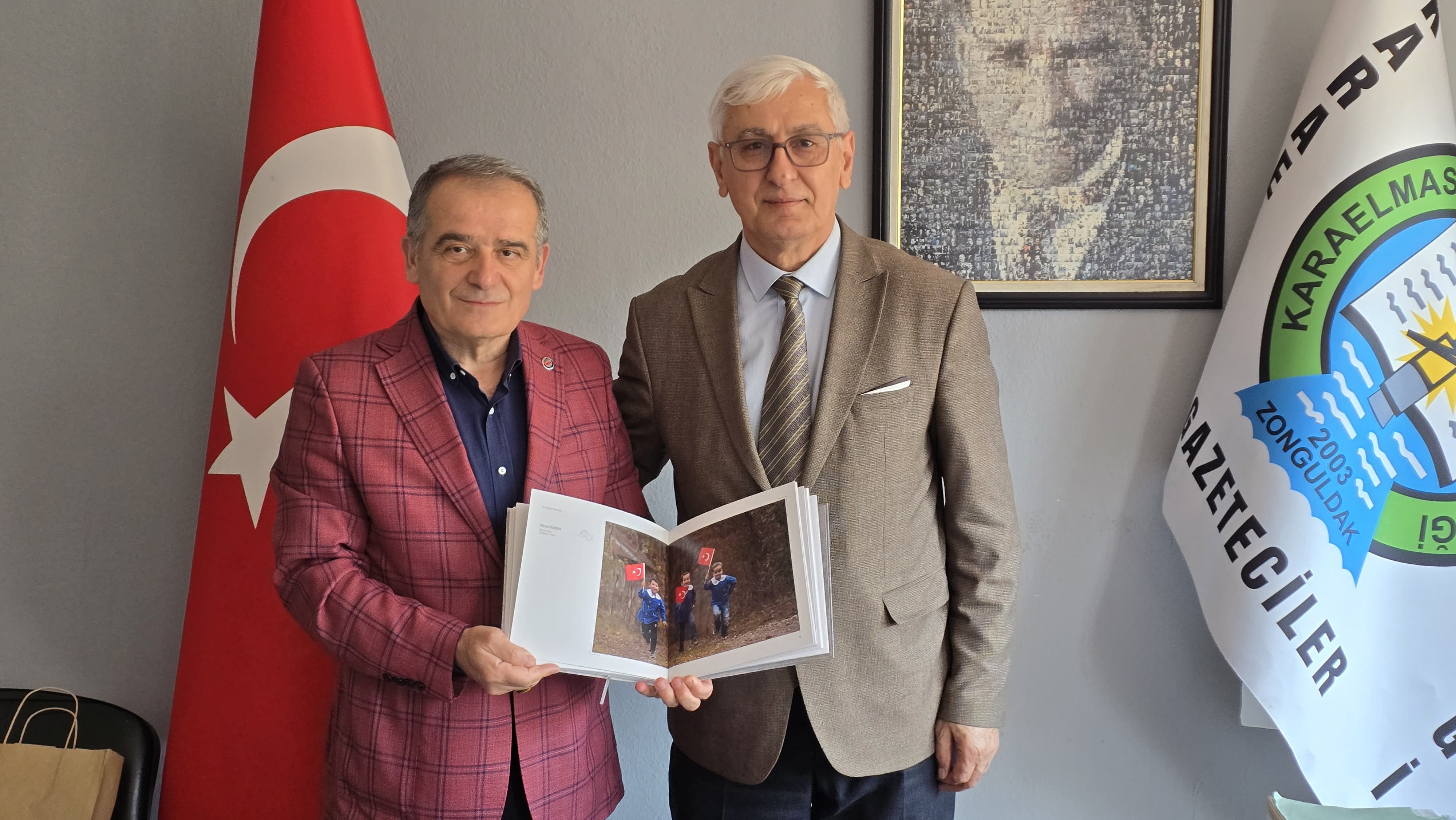 Memur Sen Zonguldak İl Temsilcisi ve Eğitim Bir Sen Zonguldak Şube Başkanı Kamuran Aşkar, Sağlık Sen Zonguldak Şube Başkanı Mehmet Ali Kara, Birlik Haber -Sen Zonguldak Şube Başkanı Selda Ünlü, Büro Memur-sen Zongudlak Şube Başkani Ramazan Seyrek, Enerji Bir Sen Batı Karadeniz Şube Başkanı Sedat Güngör ile birlikte Karaelmas Gazeteciler Derneği Başkanı Bahaddin Arı ve yönetimini ziyaret ederek hayırlı olsun dileklerinde bulundu.